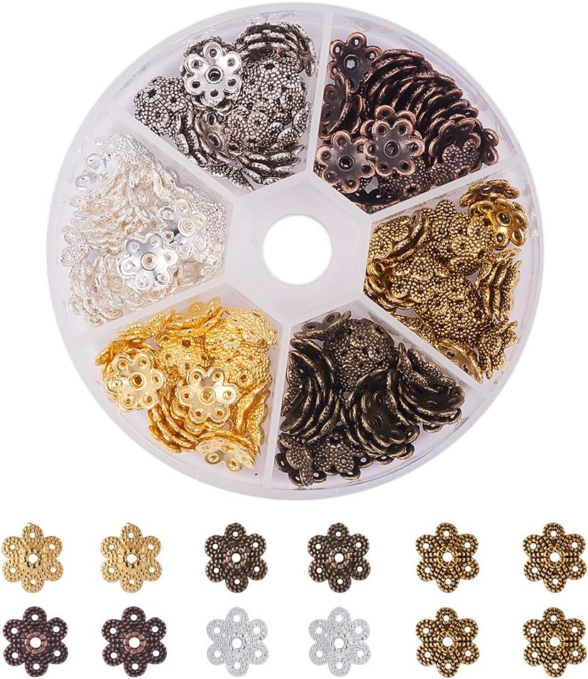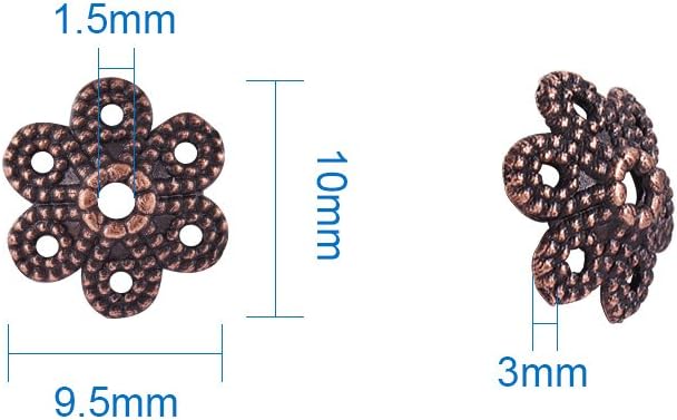 تفاصيل المقاس: يبلغ طول قبعات خرز الزهرة حوالي 7 ~ 13 مم (0.2 بوصة ~ 0.5 بوصة)، وعرضها 6 ~ 13.5 مم، والفتحة 1.2 ~ 2 مم. جميع خرزات صناعة المجوهرات معبأة في صندوق حاوية بلاستيكي مقاس 6.8 × 5.2 × 1.1 سم (2.6 × 2 × 0.4 بوصة).