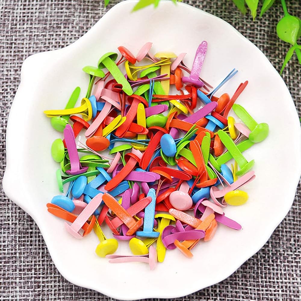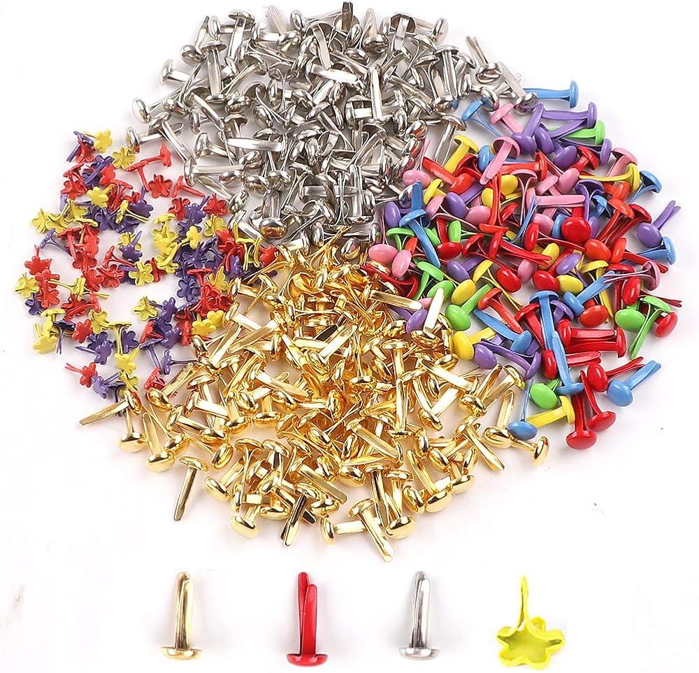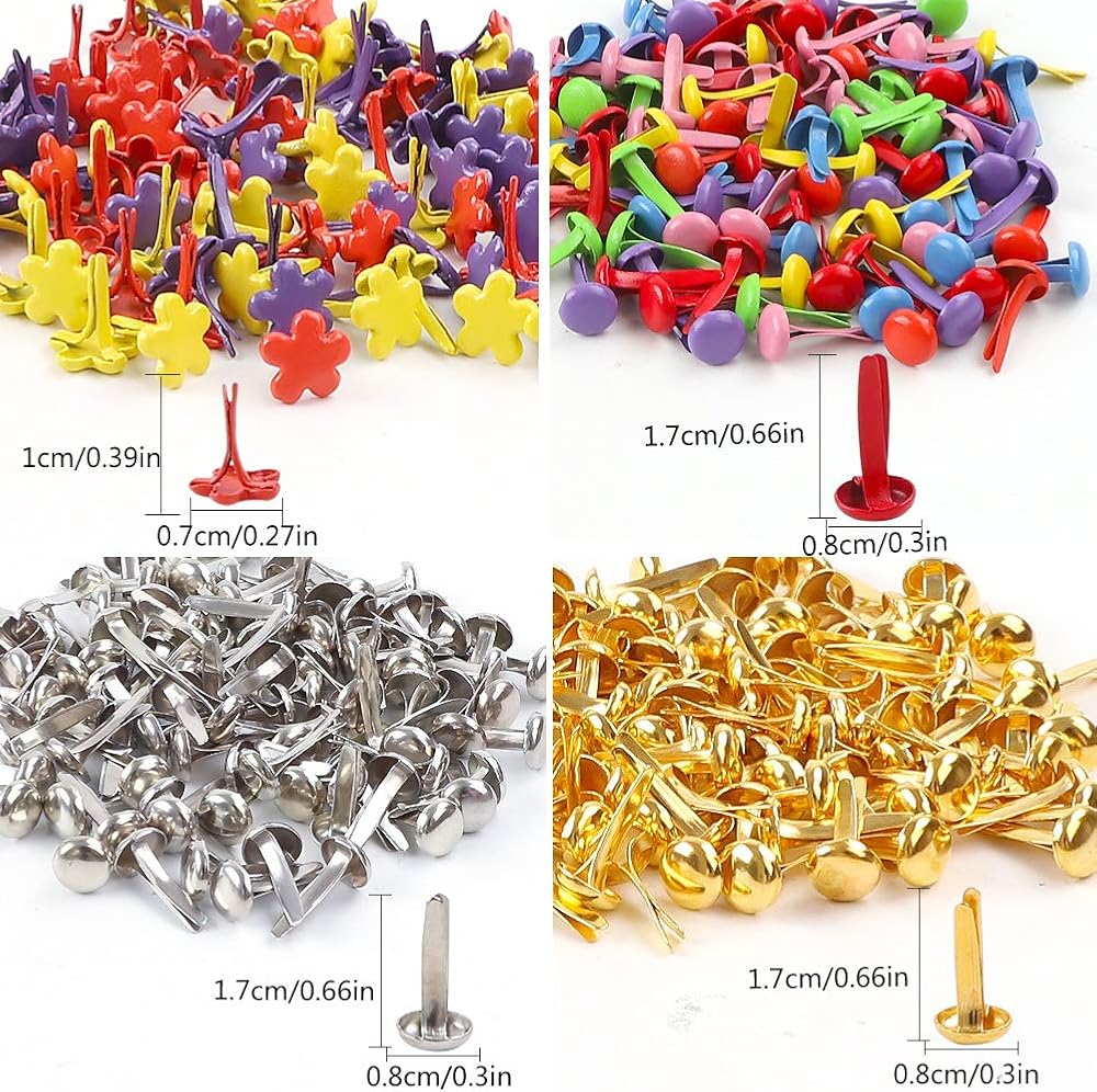 400 قطعة من مشابك الورق والسحّابات صغيرة من النحاس المطلي بدبوس القصاصات - ذهبي فضي - معدن دائري - أساور سكرابوكينغ - صناعة يدوية - مشروع المدرسة