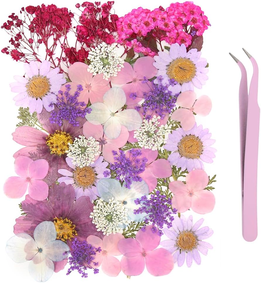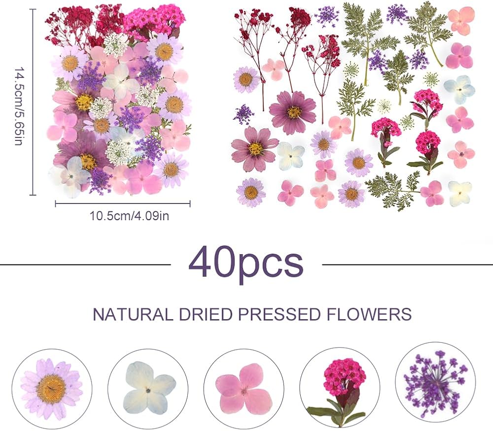 【تفاصيل العبوة】 تأتي هذه العبوة مع 40 قطعة من أوراق الزهور المجففة الحقيقية المضغوطة وقطعة واحدة من الملاقط المنحنية، تأتي الزهور المجففة بأنماط مختلفة، ستنبهر بهذه النباتات الجميلة