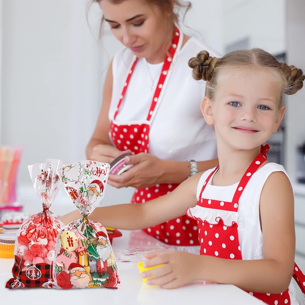 سهلة الاستخدام: تأتي أكياس الوجبات الخفيفة مقاس 15.24 سم × 27.94 سم مع أربطة ملتوية مقاس 10.16 سم، وهذا حجم مثالي للحلوى والبسكويت.