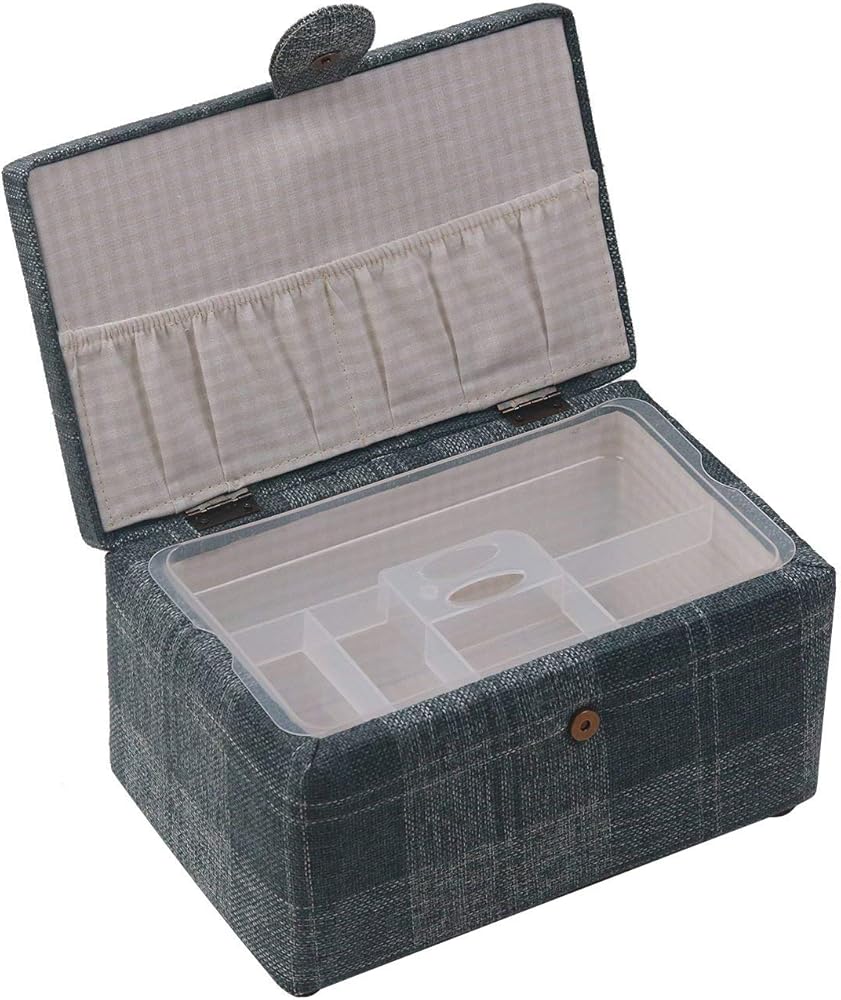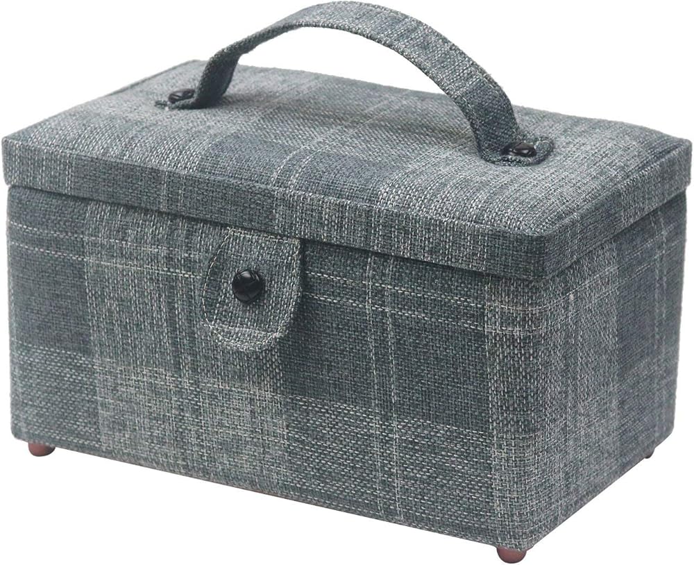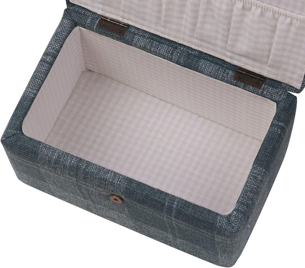 صناعة يدوية جديدة - سلة الخياطة هذه ذات أرجل ومقبض من القماش، زر تثبيت يبقي غطاء السلة مغلقًا. داخل السلة، توفر صينية بلاستيكية قابلة للإزالة مساحة تخزين واسعة لأغراض الخياطة أو التطريز