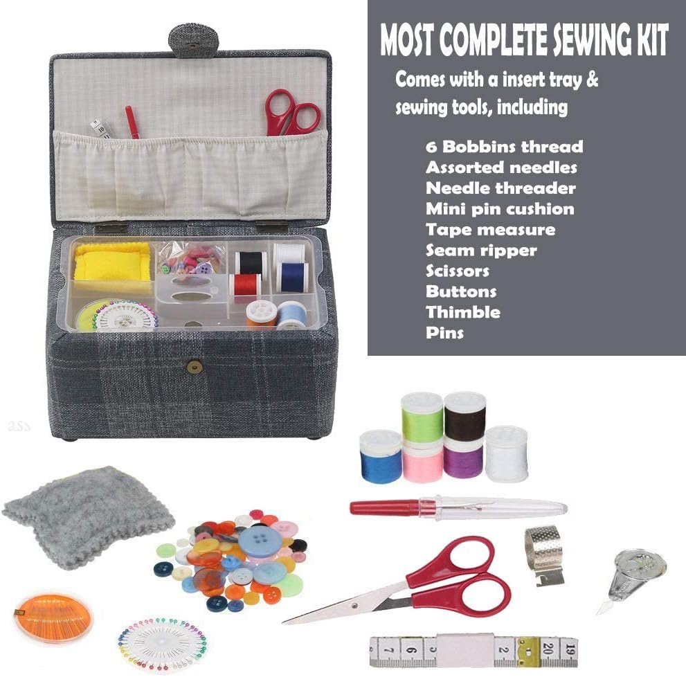 مجموعة سلة مثالية - سلة خياطة كلاسيكية مع ملحقات مجموعة الخياطة الكاملة، مجموعة خياطة مفيدة لاحتياجات إصلاح المنزل والطوارئ