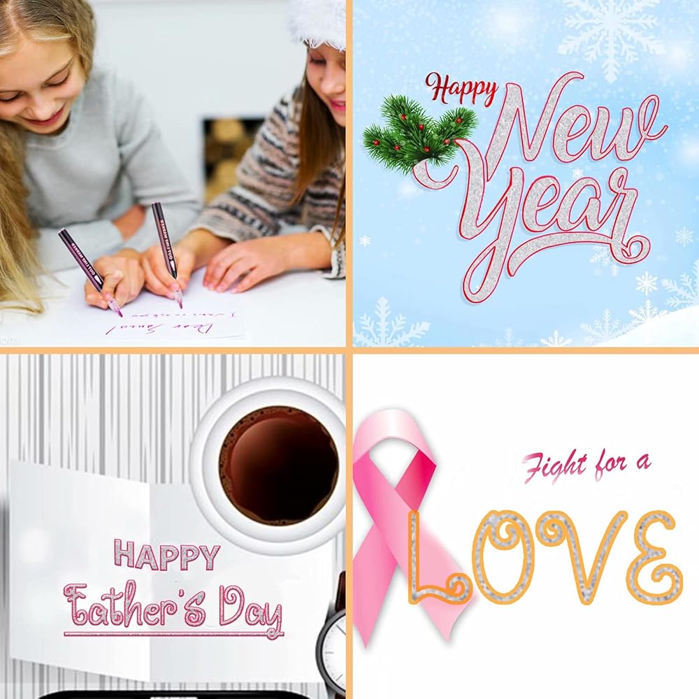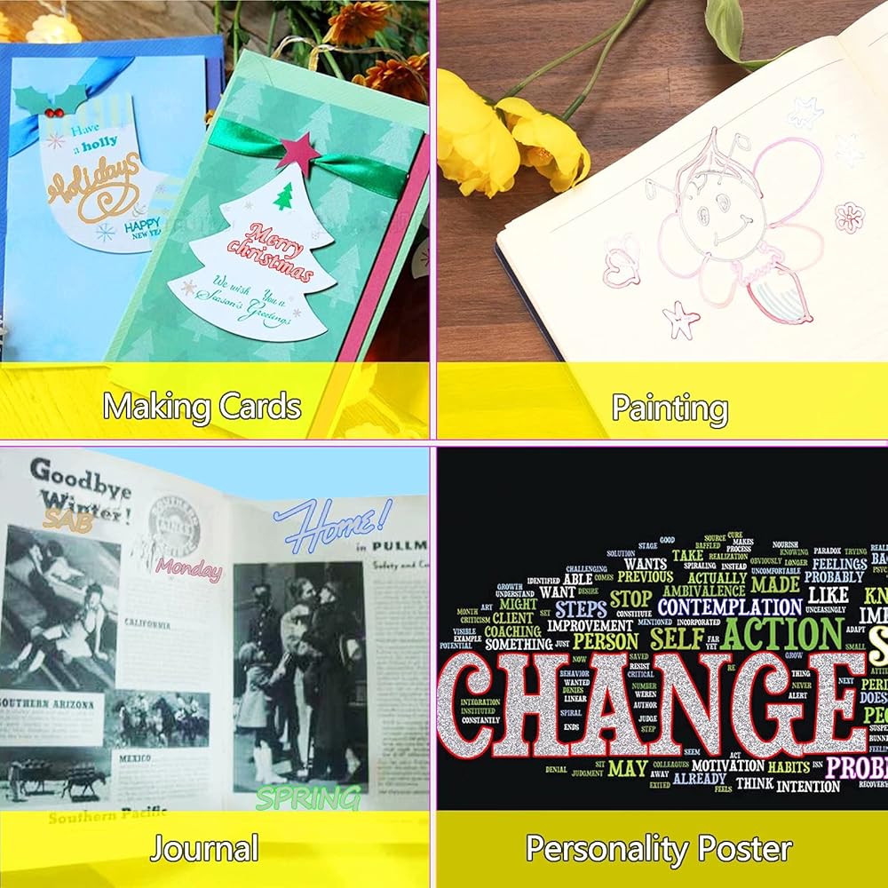 12 لونًا زاهيًا: يأتي مع 12 لونًا ساطعًا يحتوي على حبر متلألئ، مما سيضيف بريقًا لامعًا. رائعة للفنون والحرف اليدوية والتلوين وبطاقات الهدايا وبطاقات الكريسماس والمشروعات اليدوية واللوحات وما إلى ذلك.