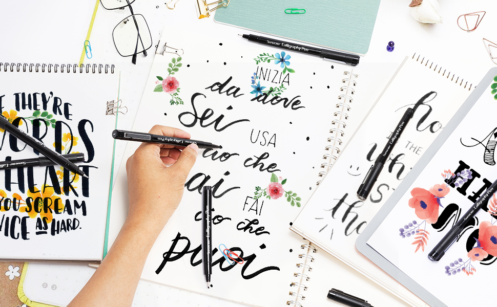 • ستتوافق أقلام الخط الفنية الاحترافية بشكل مثالي مع أقلام تحديد الألوان المائية لحروف الفرشاة والرسم. أيًا كان ما تقوم به من أعمال فنية أو تكتب