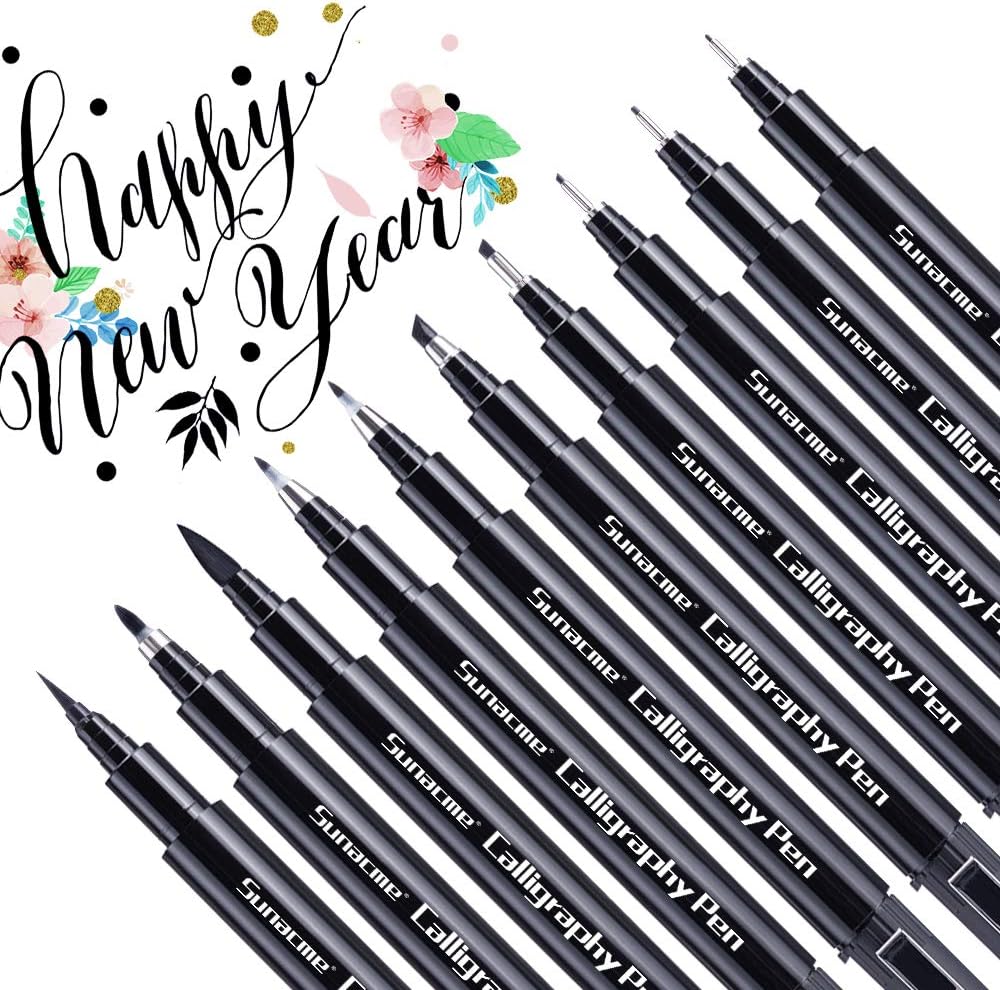 • 10 مقاسات من قلم الحروف الأسود يشمل: 0.5، 0.8، 1 ملم، 2 ملم، 3 ملم، فائقة النعومة، رقيقة، متوسطة، فرشاة، فرشاة ناعمة. يمكن أن تلبي أنواع المقاسات جميع متطلباتك