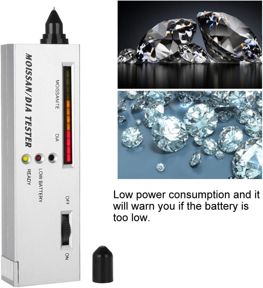 يمكن لهذا المنتج اختيار المويسانتي من الماس الحقيقي. اختبار غير مدمر، لا تؤذي منتجك. سيتم التنبيه تلقائيًا إذا كانت البطارية منخفضة جدًا. حجم محمول، مناسب للحمل. سهل التشغيل واختبار دقيق.