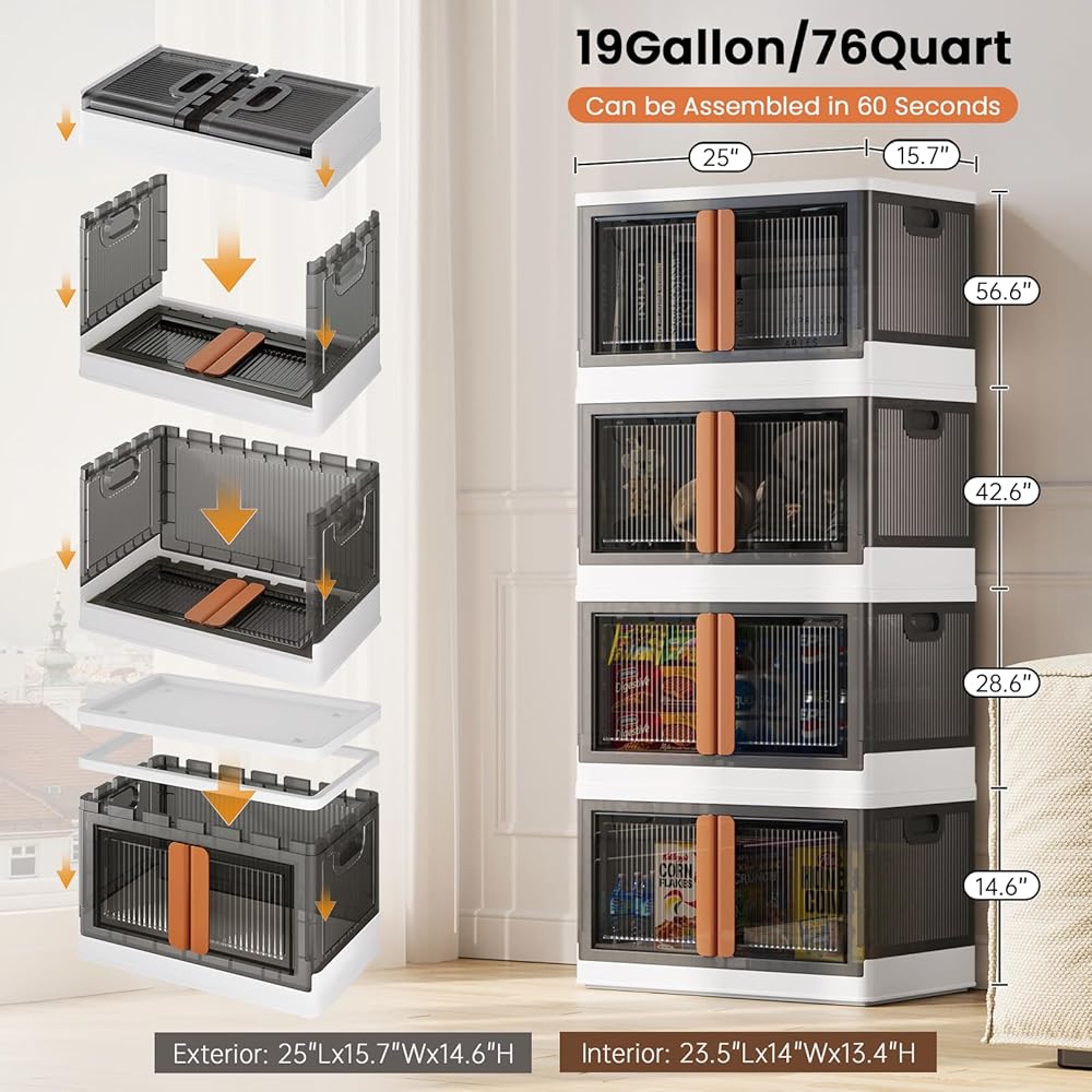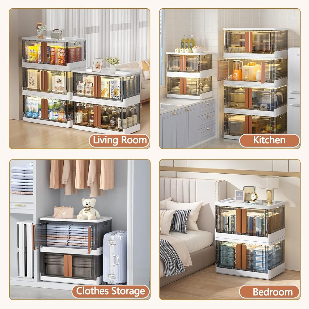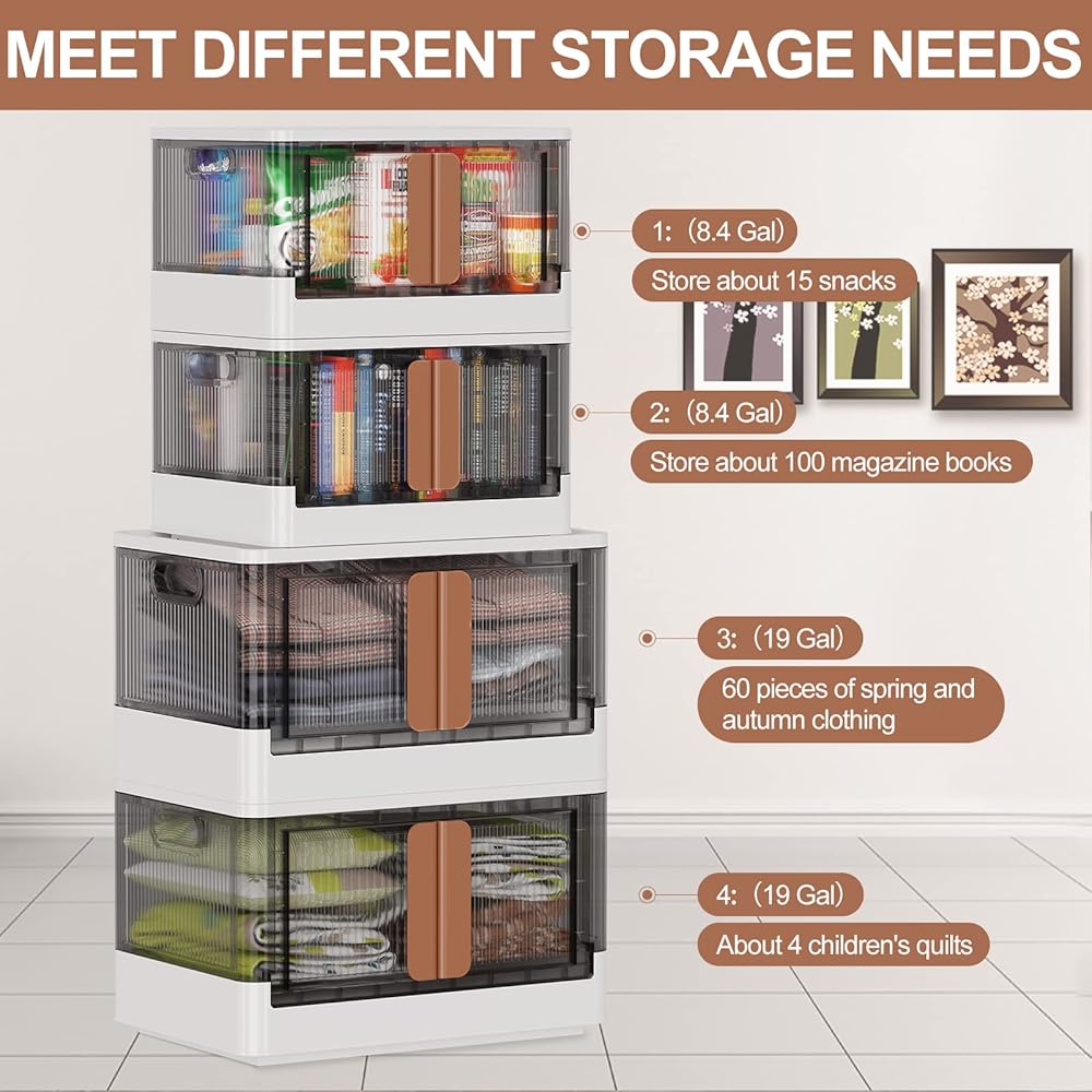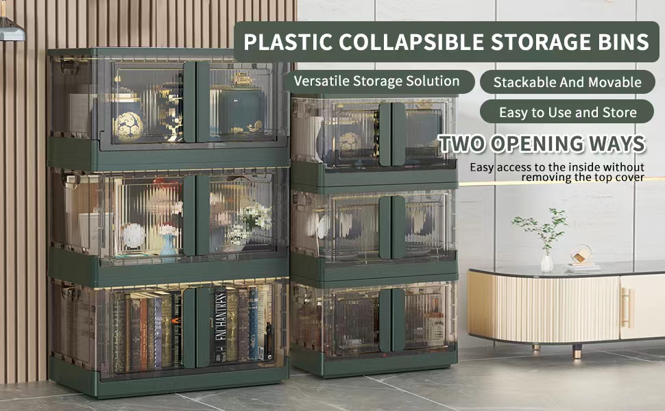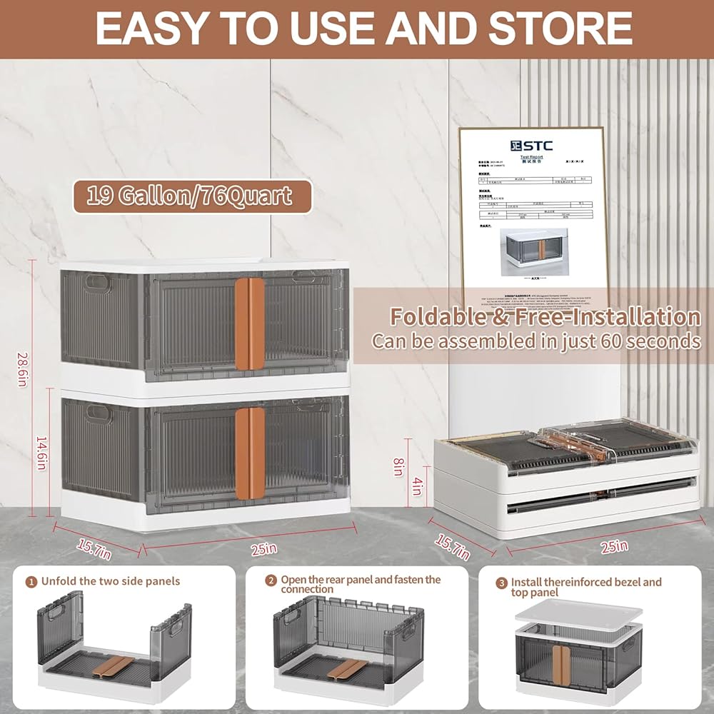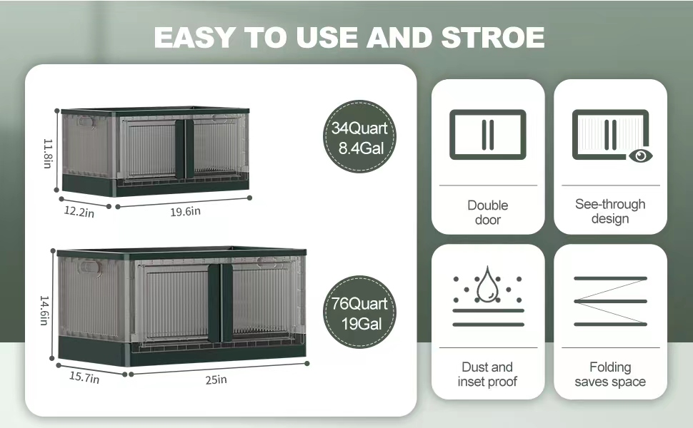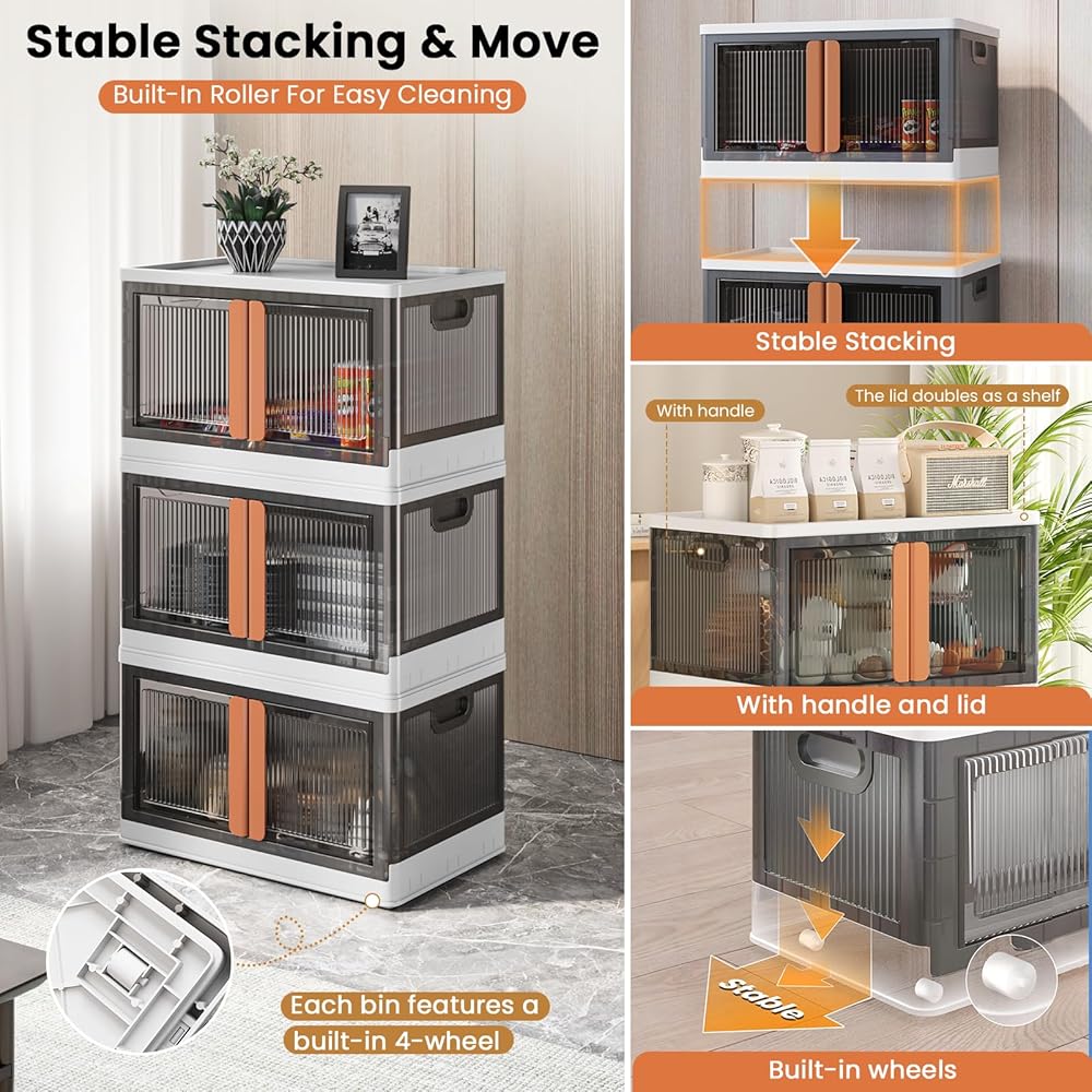 【توفير المساحة والنقل】 تضمن الأخاديد الموجودة على غطاء صناديق التخزين القابلة للطي الثبات عند التكديس، مما يوفر مساحة أكبر. العجلات الأربع سهلة التشغيل الموجودة في الجزء السفلي من الصندوق تجعل من السهل التحرك أثناء التنظيف.