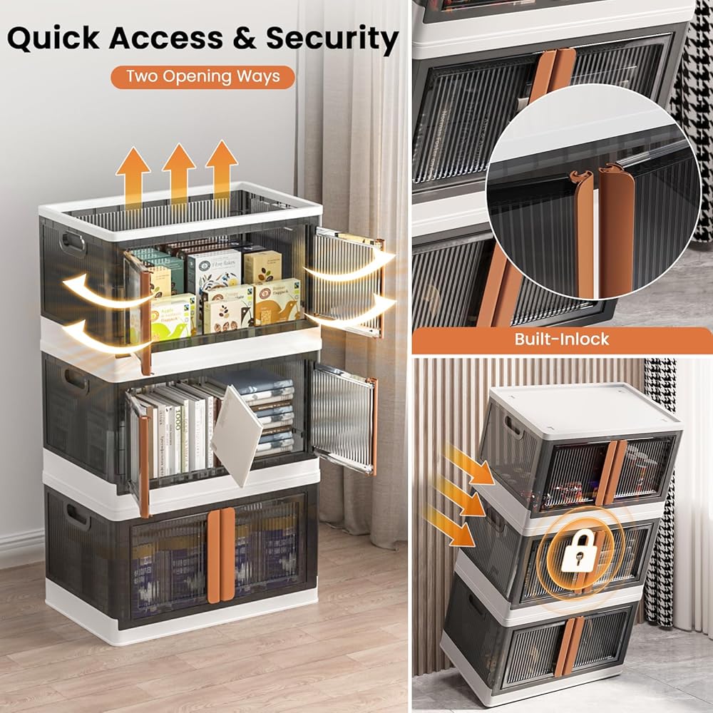 【وصول مريح】 يمكن فتح صناديق التخزين بطريقتين - من الغطاء العلوي أو الباب الأمامي. يضمن القفل المدمج عدم فتح الباب تلقائيًا، كما أن تصميم الباب المزدوج يجعل من السهل الوصول إلى كل شيء بالداخل دون الحاجة إلى إزالة الغطاء العلوي.