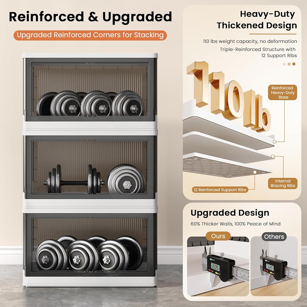 【تصميم مدروس】 تحتوي صناديق تخزين الخزانة لدينا على مقابض على كلا الجانبين، مما يجعل من السهل العثور على أغراضك وحملها. مع سعة تحميل قصوى تبلغ 8.4 جالون و110 رطل (50 كجم)، فهي متينة ويمكنها حمل جميع ضرورياتك.