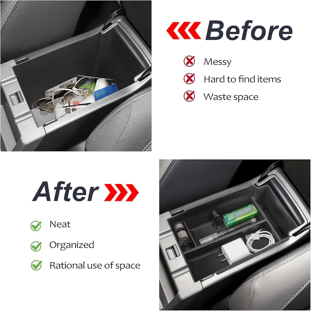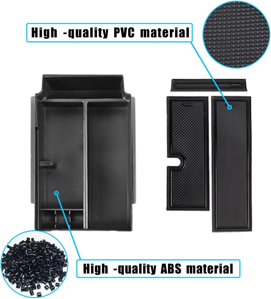 【Upgrade material】 The body of the storage box is made of high-quality ABS plastic, which is strong and not easily deformed. Armrest storage organizer is equipped with non-slip pad made of high quality rubber, which is environment-friendly and odor-free. You don't have to worry about changing your storage boxes frequently. Our center console storage box is durable.