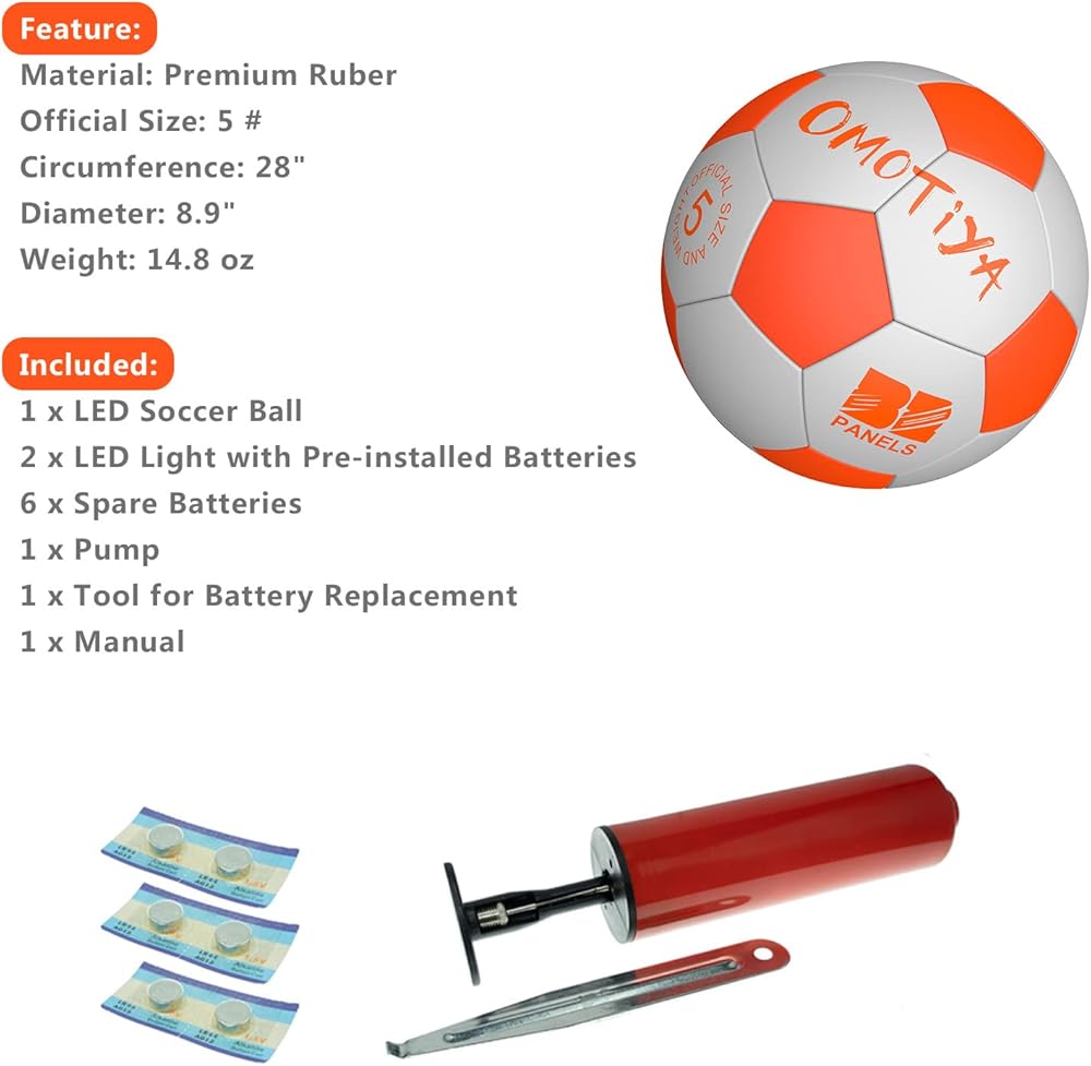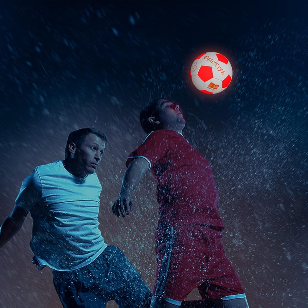 【خامة عالية الجودة】: كرة القدم المضيئة LED من OMOTIYA مصنوعة من مطاط متين عالي الإمساك يتحمل التآكل على العشب أو الخرسانة أو أي سطح آخر. إنه يضمن احتكاكًا إضافيًا مما يجعل كرة القدم سهلة الركل أو الركل أو التسديد.