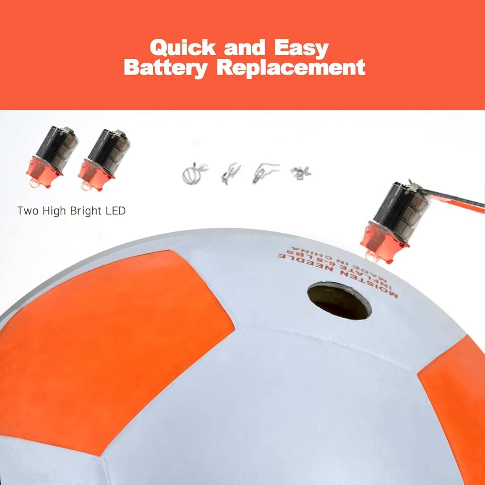 【تتضمن بطاريات إضافية】: تأتي كل كرة قدم متوهجة مع بطاريات مثبتة مسبقًا ومجموعة إضافية للاستبدال. سوف تتلقى أيضًا أداة وتعليمات تستخدم لتغيير البطاريات. تدوم البطاريات حوالي 30 ساعة وستمنحك متسعًا من الوقت للعب طوال الليل.