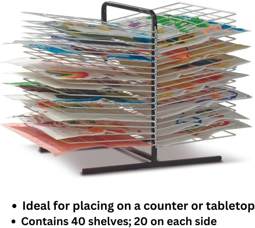 حامل تجفيف فني ذو 20 رفًا: يوفر الحماية والتنظيم لما يصل إلى 20 من لوحات طلابك وغيرها من الأعمال الفنية على الورق والقماش والكرتون والمزيد