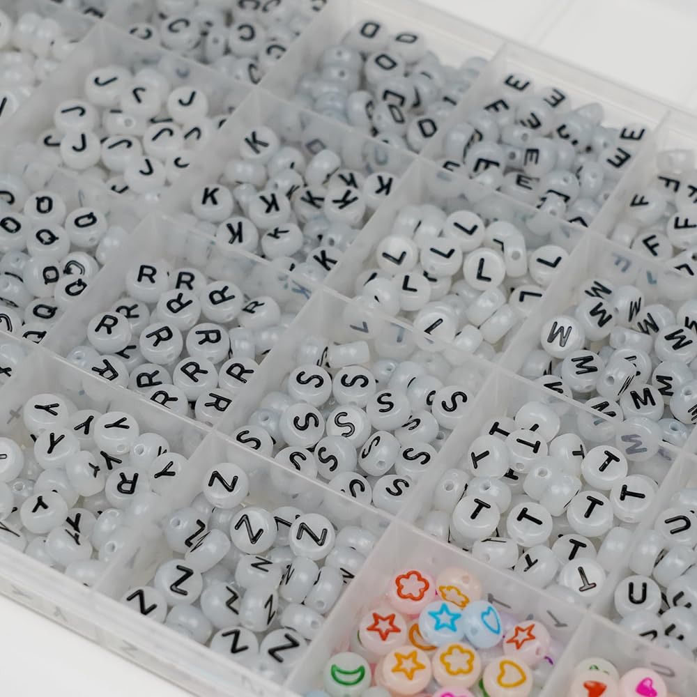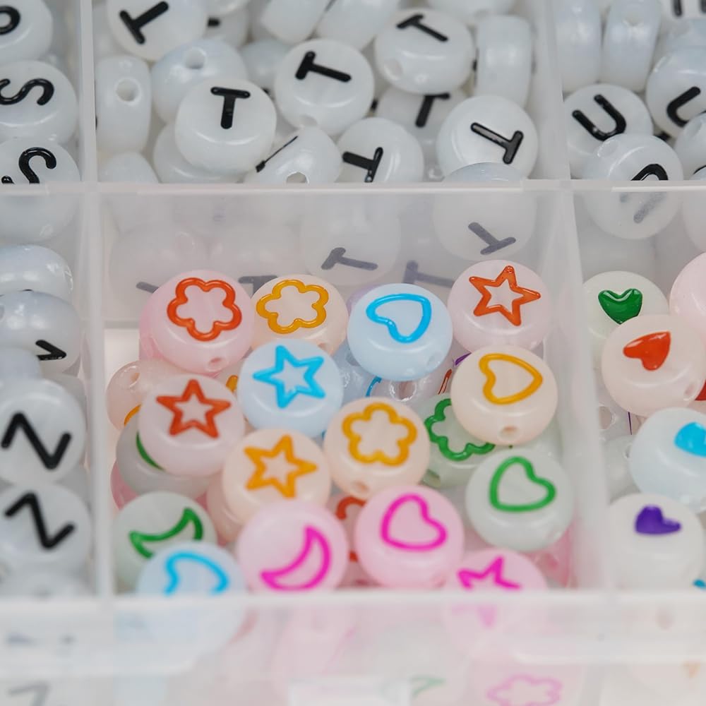 • الكمية والنمط: يمكنك الحصول على 1450 قطعة خرز، بما في ذلك 26 حرفًا بالكامل، وخرز قلب أحمر، وخرز نجمة سوداء، و50 قطعة لكل نوع من الخرز، و10 خرزات إضافية لكل حرف علة. لون الخرز أبيض، والحروف سوداء، وأنماط القلب حمراء، وأنماط النجوم سوداء، وهي ألوان كلاسيكية للغاية ويمكنك بسهولة إظهار مشاعرك أو مزجها مع أنواع أخرى من الخرز.