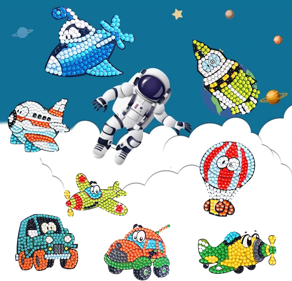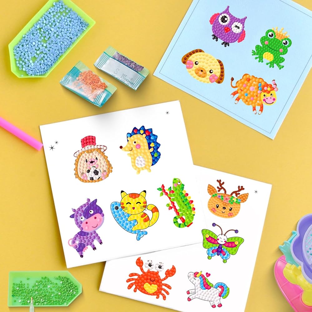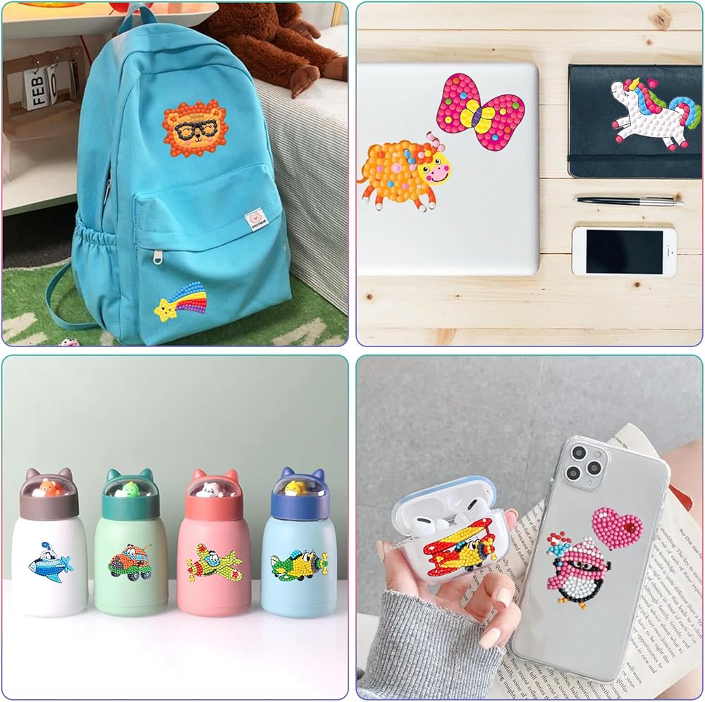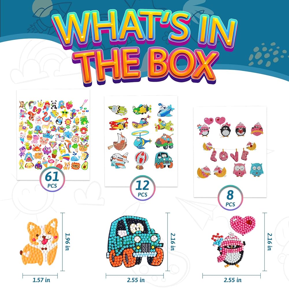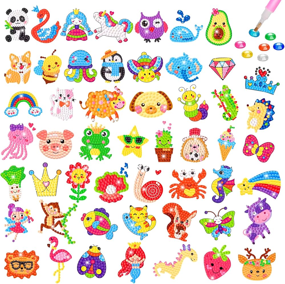 81 قطعة من ملصقات الرسم الماسي DIY: مصممة للأطفال من سن 4 إلى 12 عامًا، تتميز ملصقات الرسم الماسي هذه المصنوعة بعناية بالكثير من العناصر اللطيفة خماسية الأبعاد مثل الحيوانات والفواكه والنباتات والحروف والمركبات.