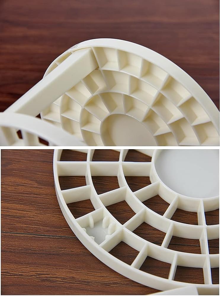 سهلة التجميع ومريحة في الاستخدام. ما عليك سوى وضع الأجزاء الرأسية الثلاثة في 3 فتحات من القرص السفلي ووضع القرص العلوي عليها مع تكرار نفس الإجراء.