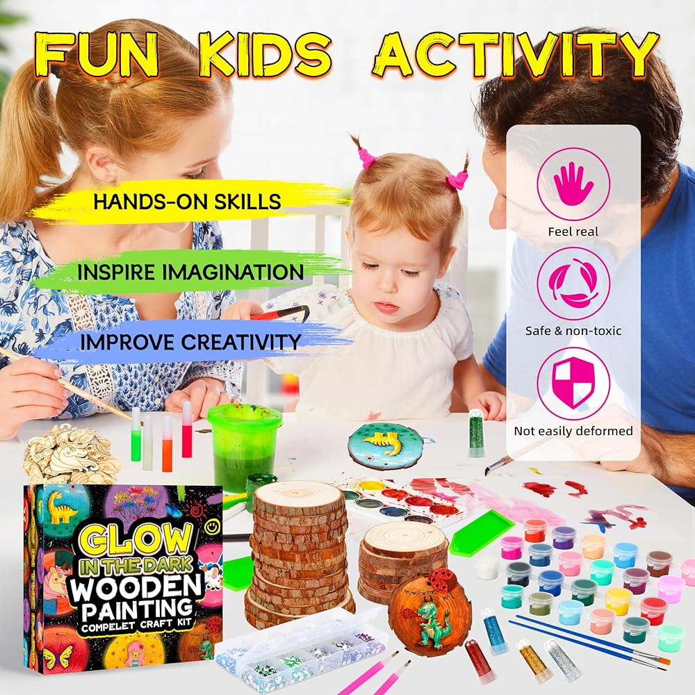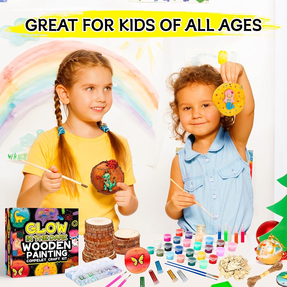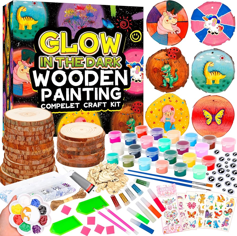 مجموعة طلاء الخشب للأطفال - تتوهج في الظلام - هدايا الفنون والحرف اليدوية للأولاد والبنات الذين تتراوح أعمارهم بين 4-8 و8-12 - مجموعات الأنشطة الحرفية - ألعاب فنية إبداعية لأعمار 4، 5، 6، 7، 8، 9، 10، 11 & أطفال بعمر 12 سنة