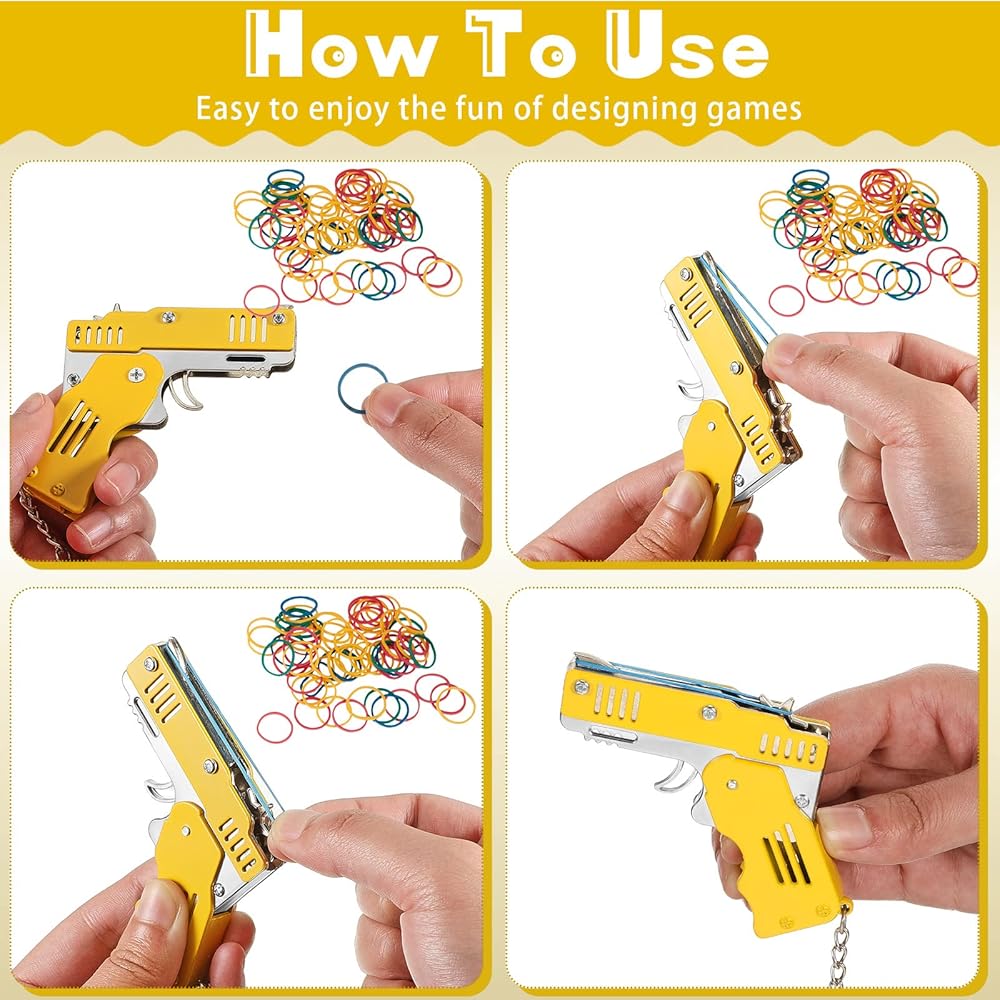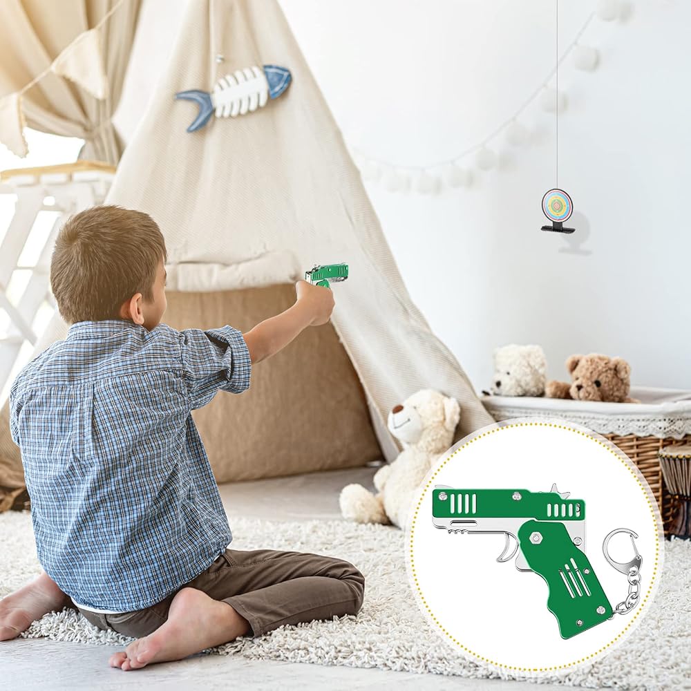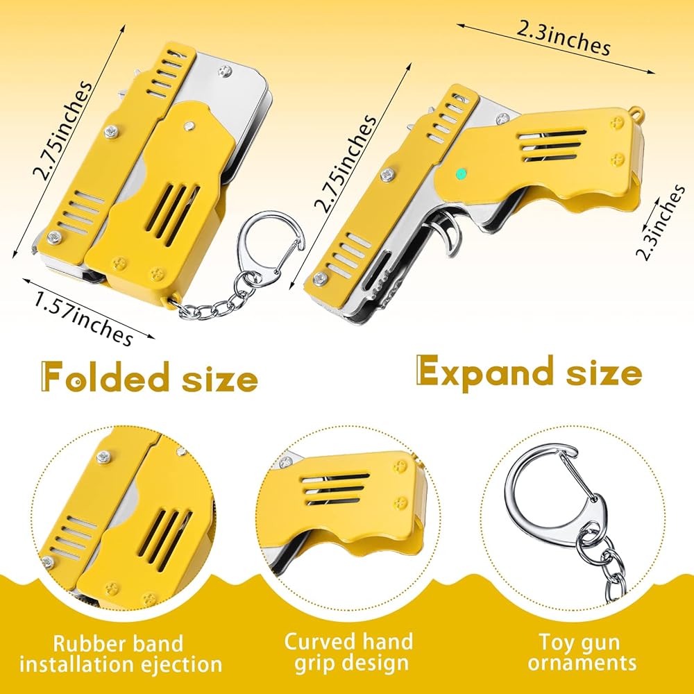 • تصميم قابل للطي: تم تصميم لعبة المسدس ذات الشريط المطاطي بسلاسل مفاتيح يمكن تعليقها على المفاتيح أو الحزام أو الحقيبة أو الحقيبة المدرسية أو أشياء أخرى، وهي قابلة للطي وسهلة الحمل والتخزين، ولن تشغل مساحة كبيرة، ولكنها يمكن أن تجلب لك المزيد من المرح
