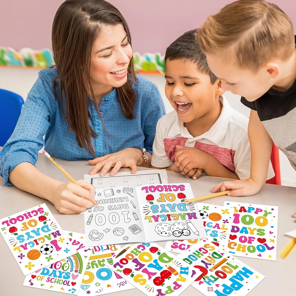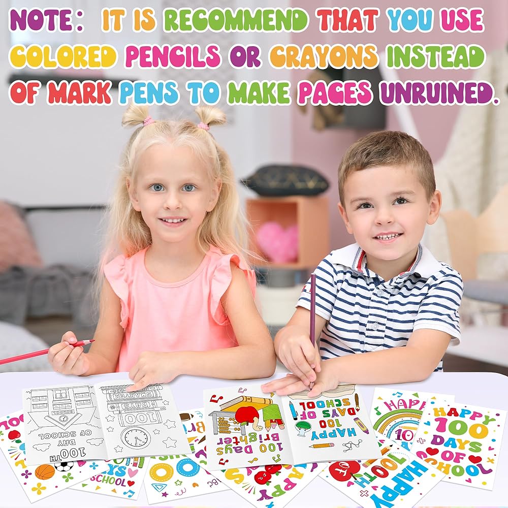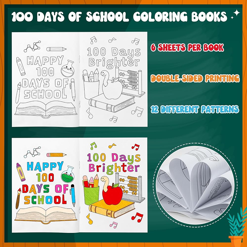 24 قطعة من دفاتر التلوين المدرسية من Dvbonike - 100 يوم سعيد من المدرسة، صفحات ملونة يمكنك صنعها بنفسك، قلم رصاص لطيف، أنماط التفاح، كتيب رسم، مكافآت الفصل الدراسي، هدايا الأنشطة الفنية، مستلزمات الحفلات