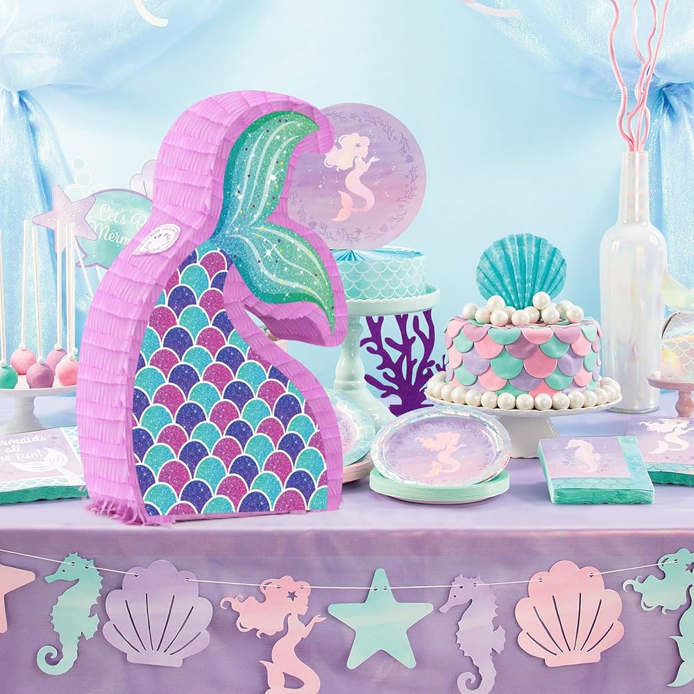 حورية البحر بيناتا لتزيين حفلات اعياد الميلاد، العاب حفلات حورية البحر مع معصوب العينين وخفاش حورية البحر، لوازم حفلات للبنات بطابع تحت البحر، لعبة حفلات اعياد الميلاد والكرنفال للاطفال