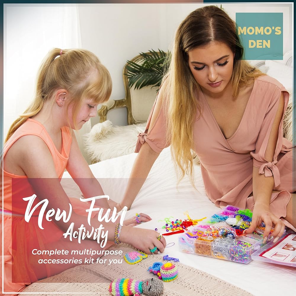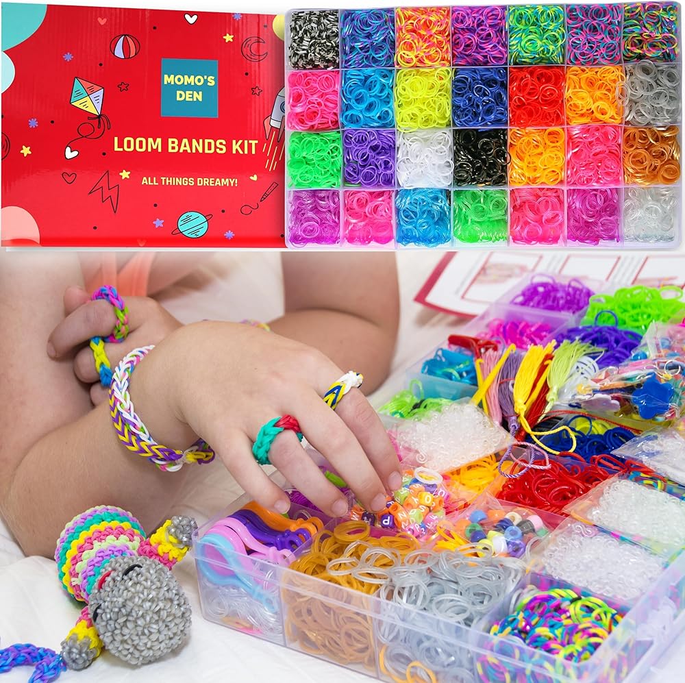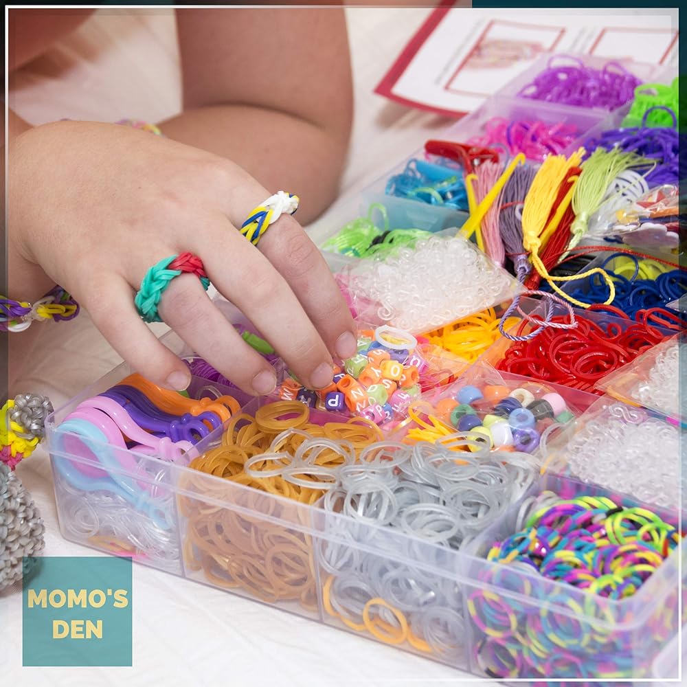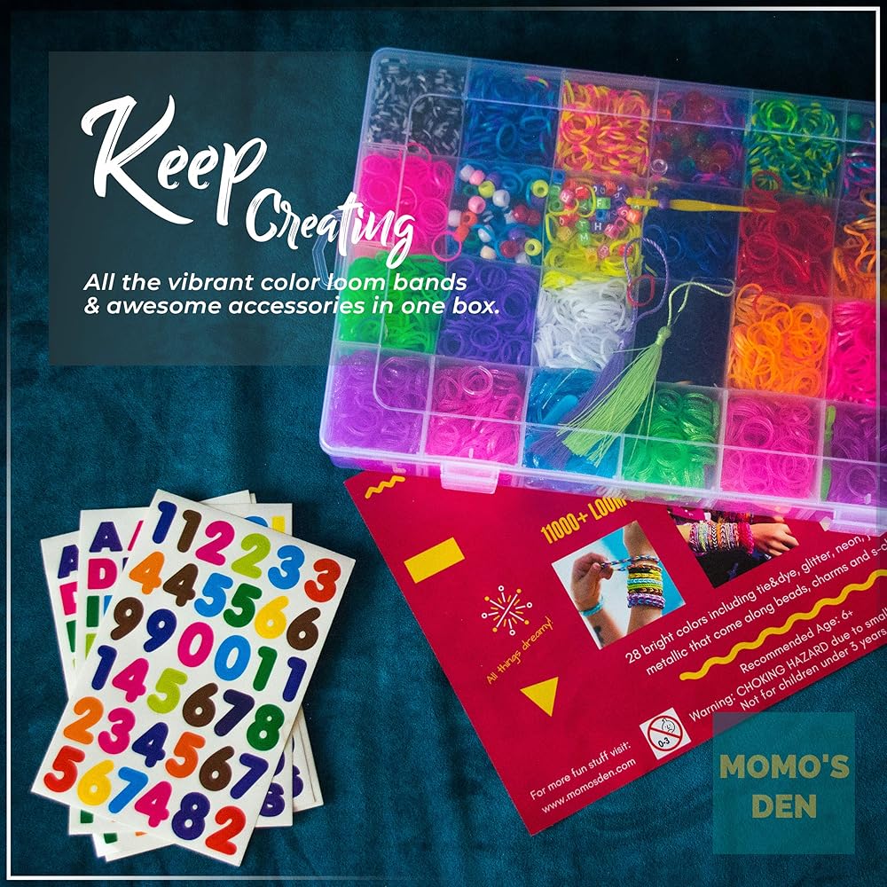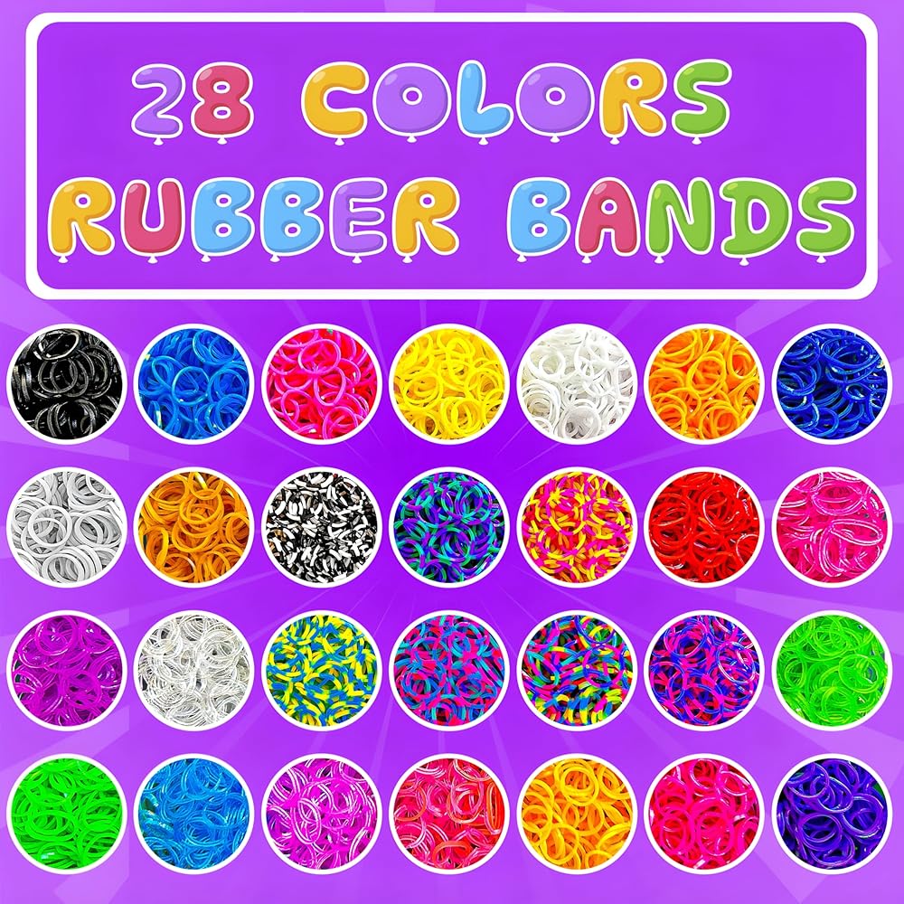 مجموعة أساور الأربطة المطاطية 12100+ لوم من موموموز، حقيبة هدايا كبيرة مع إكسسوارات عالية الجودة، 28 ربطة ملونة براقة فريدة من نوعها، مجموعة إعادة التعبئة للبنات والأولاد