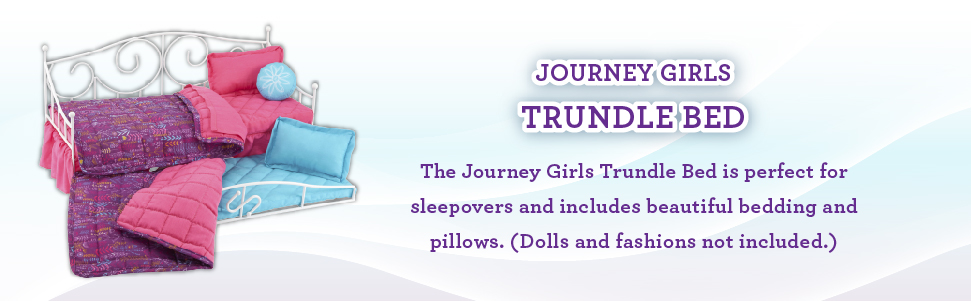 يتضمن السرير الدولاب بلومين جيرلز من Journey Girls تنورة مكشكشة للسرير ولحاف مبطن ووسادتين من القطيفة.