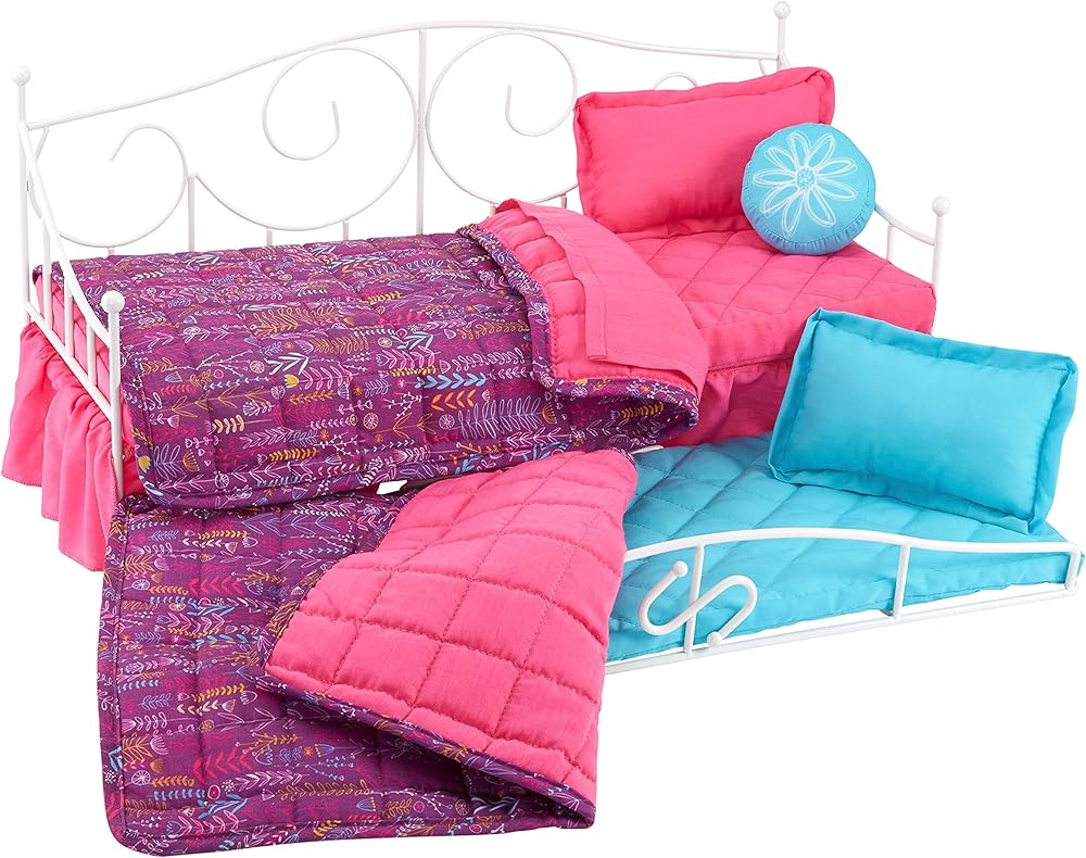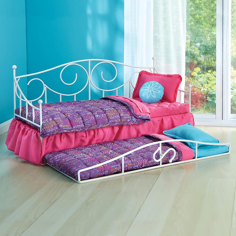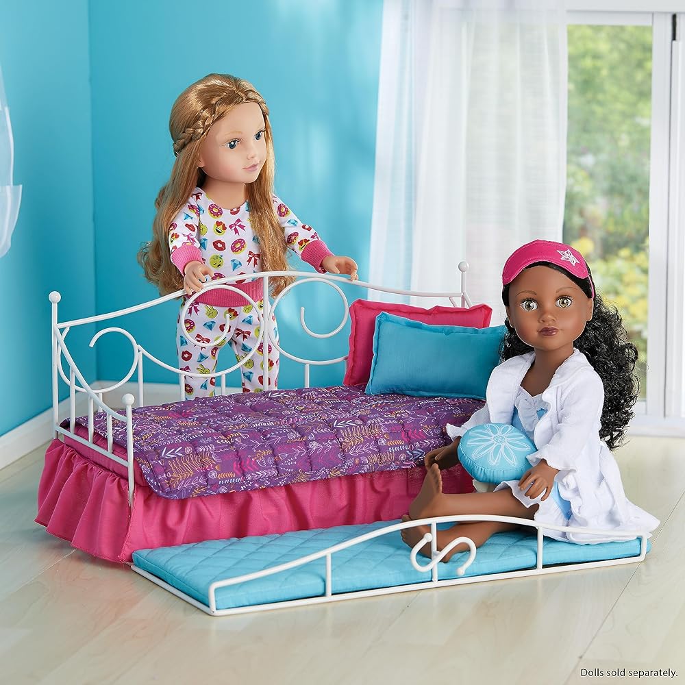 مقاس مناسب لمعظم الدمى مقاس 45.72 سم.. يتميز بسرير دولاب قابل للسحب. طراز من الحديد المطاوع ولمسة نهائية بيضاء نقية تناسب أي ديكور. للأعمار من 6 سنوات فأكثر