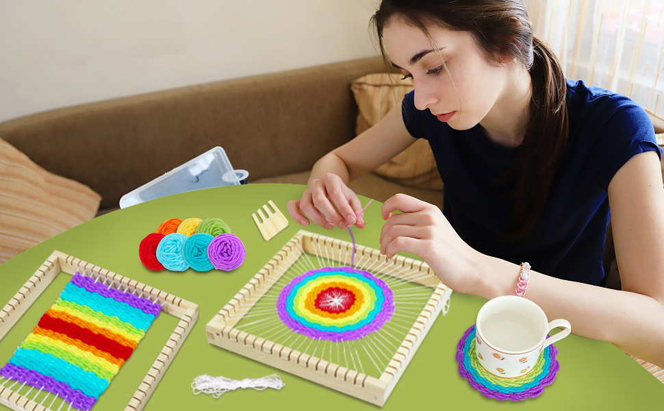 هدية جيدة للأطفال والمبتدئين: النول الخشبي سهل التشغيل، ولكن يمكن أن يحتوي على مجموعة متنوعة من المنتجات النهائية. أضف إطار نول النسيج الفني المربع الخشبي لإكمال تجربة اللعب اليدوية والإبداعية والخالية من الشاشات. بالنسبة لأولئك الذين يحبون الحرف اليدوية، فهو الخيار الأفضل للهدايا.