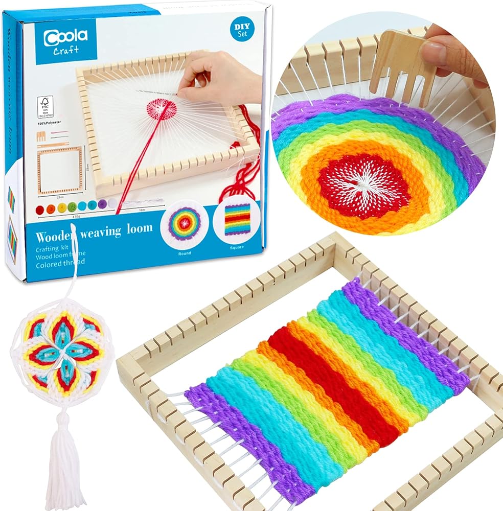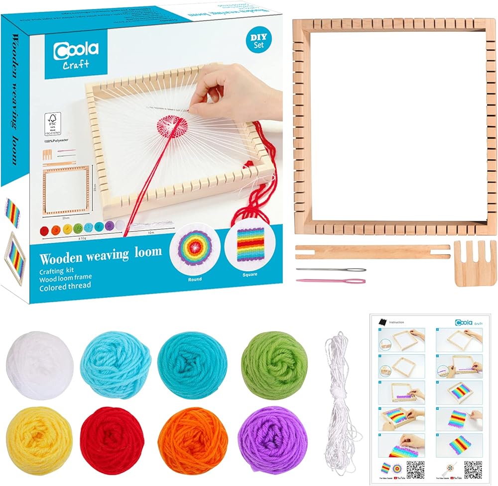 كولا مجموعة نول نسج خشبية متعددة الحرف للمبتدئين بما في ذلك مجموعة الحرف اليدوية وإطار نول خشبي وخيط ملون وتعليمات الفنون والحرف اليدوية (23 × 23 سم)