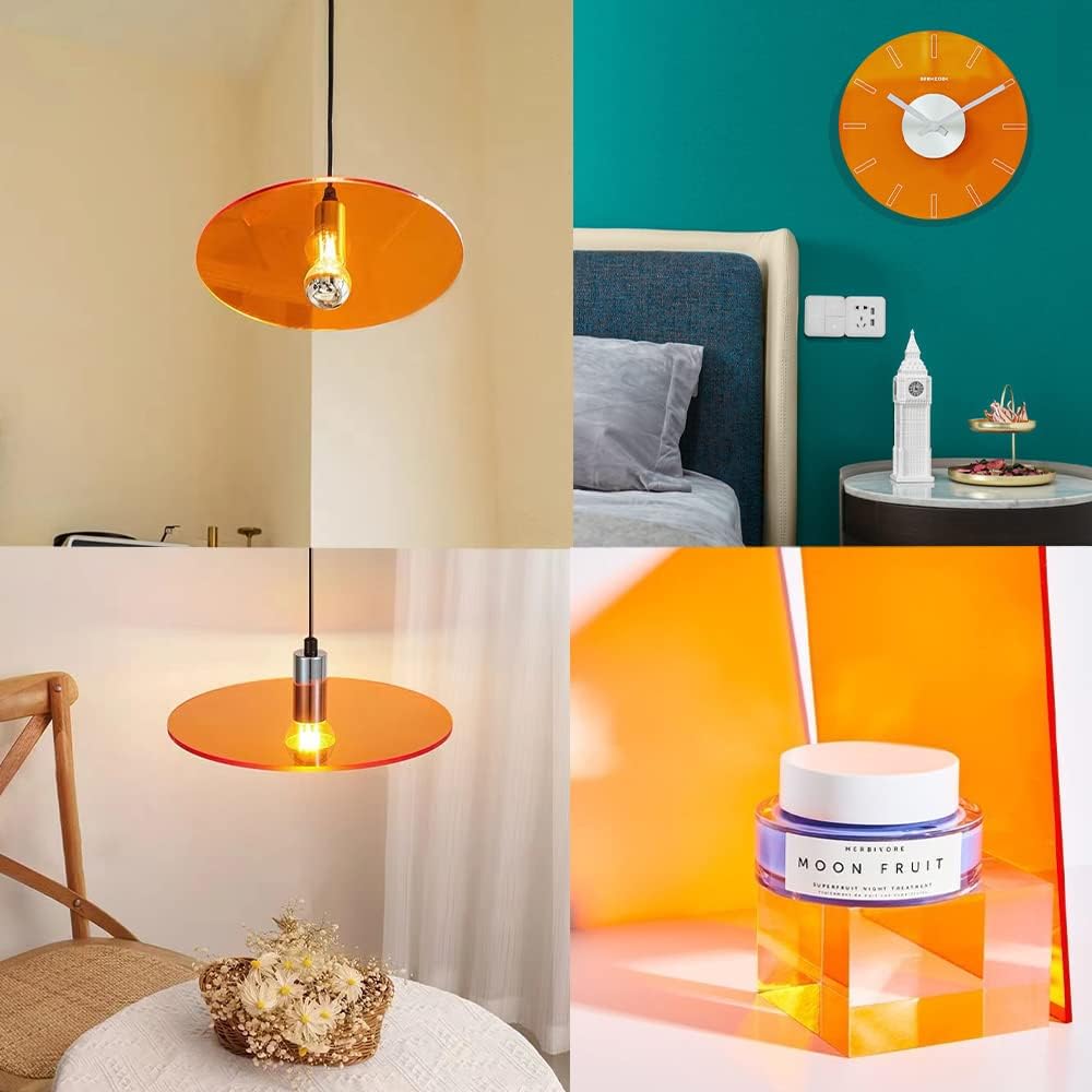 ألوان غنية: سوف تحصل على 4 قطع من ألواح الأكريليك باللون البرتقالي الشفاف، والأحمر الشفاف، والأزرق كلاين الشفاف، والأخضر الفلورسنت الشفاف، يمكنك تصميمها بنفسك وتزيينها بحرية.