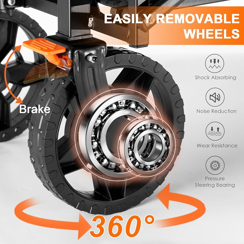 قابلية التشغيل القصوى - سلسة وسهلة المناورة: لقد صممنا عربتنا القابلة للطي مع وضع القدرة على المناورة القصوى في الاعتبار. تضمن العجلات المخصصة لجميع التضاريس قيادة سلسة على أي طريق، وتتمتع العجلات الأمامية بدوران حر بزاوية 360 درجة مع أعمدة فولاذية عالية الدقة لتحقيق أقصى قدر من المرونة والتحكم. سواء كنت تتنقل في الشوارع المزدحمة أو التضاريس الوعرة، فإن عربتنا القابلة للطي ستوصلك إلى المكان الذي تريد الذهاب إليه بسهولة.
