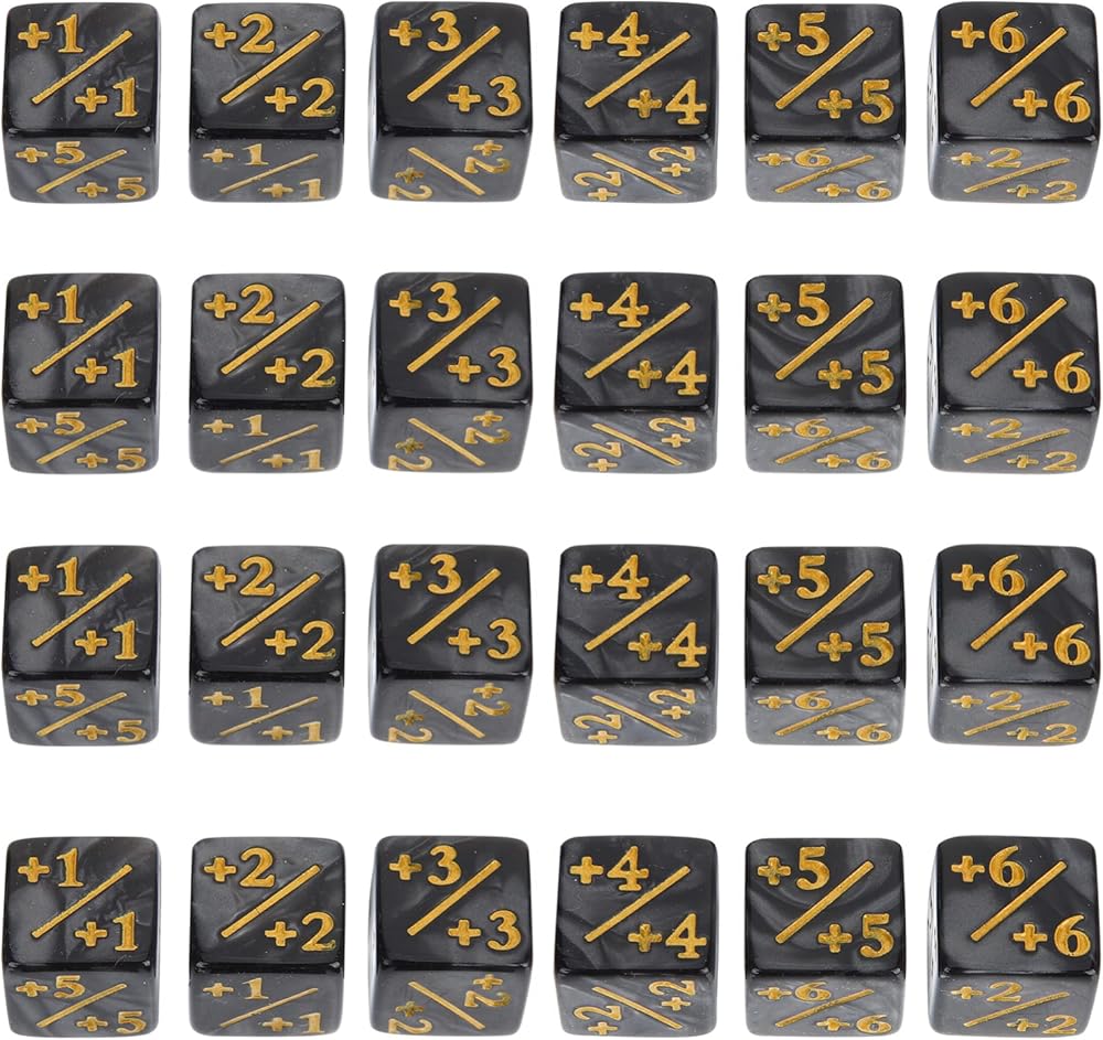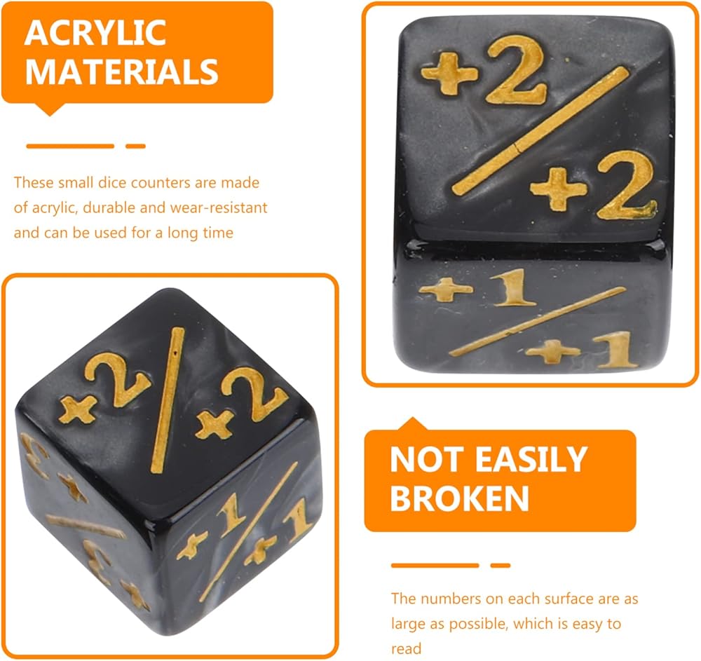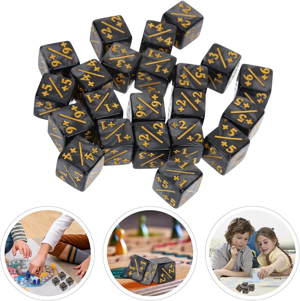 Toddmomy 24 قطعة من عدادات النرد رمز مكعب النرد الأكريليكي الموجب والسالب بطاقة النرد ملحقات ألعاب الأطفال ألعاب تعليمية (أسود)