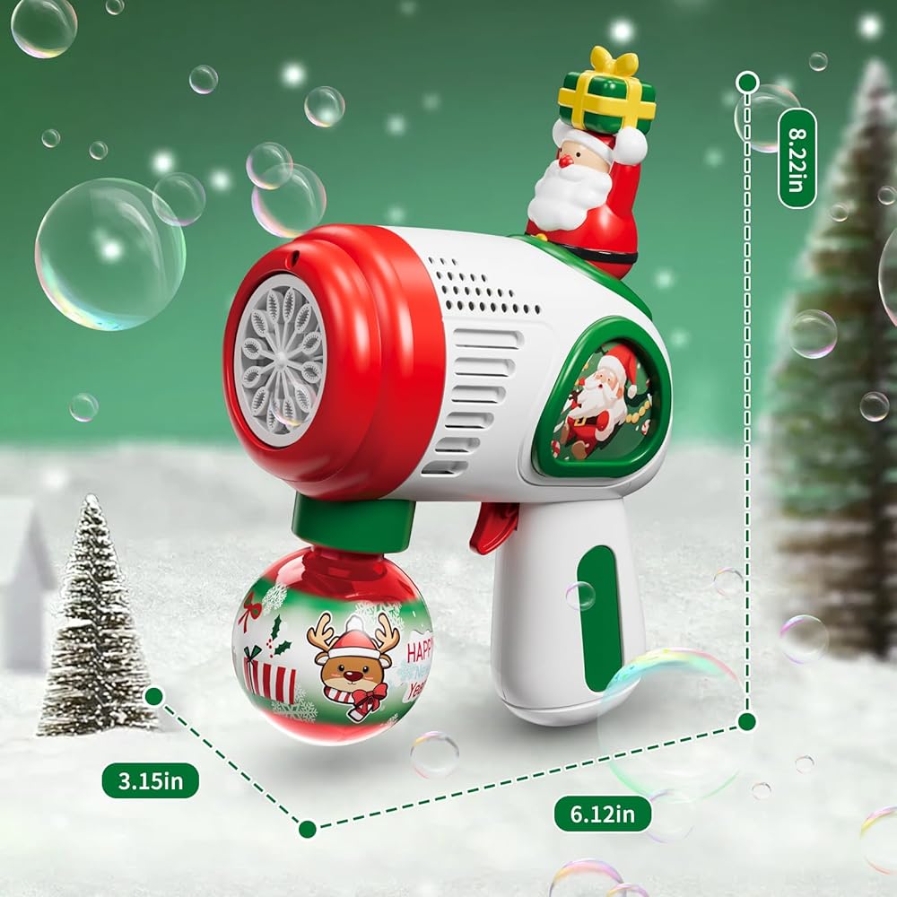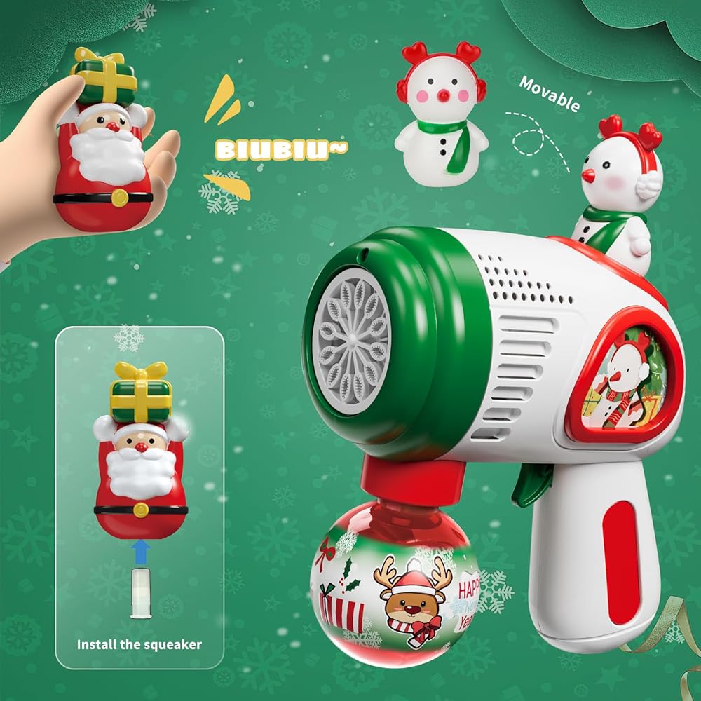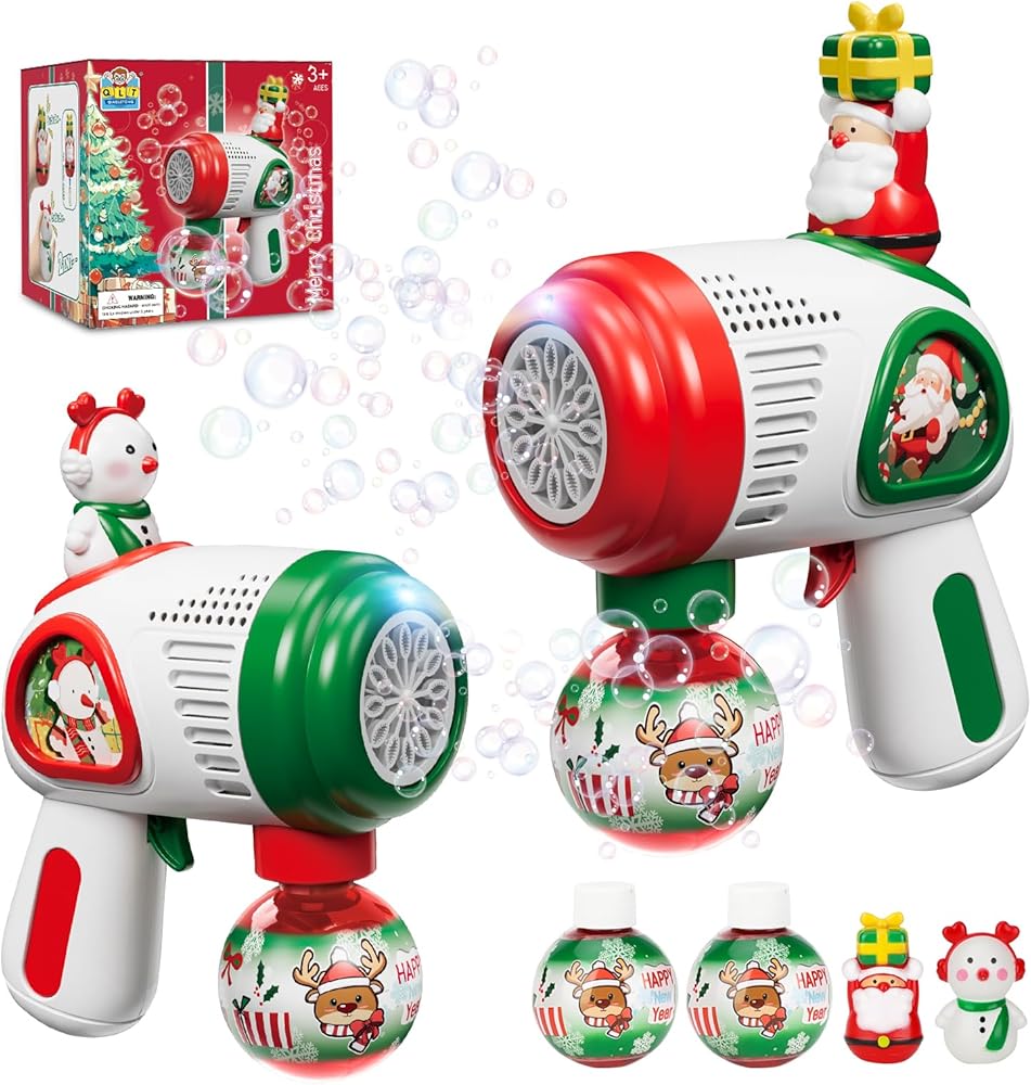مسدس فقاعات QLT، مجموعة من قطعتين من مسدس فقاعات عيد الميلاد مع دمى سانتا كلوز ورجل الثلج، صانع فقاعات الإضاءة، للأطفال الصغار