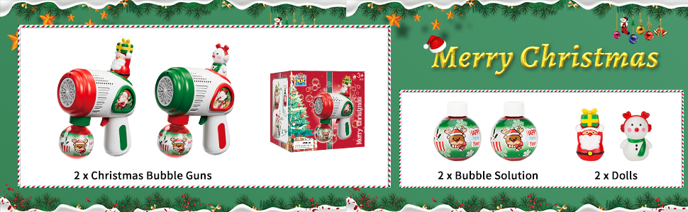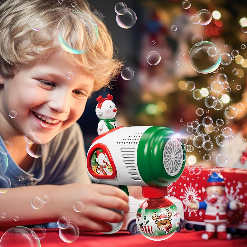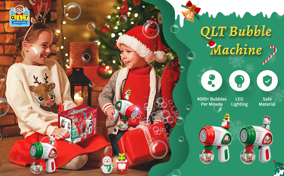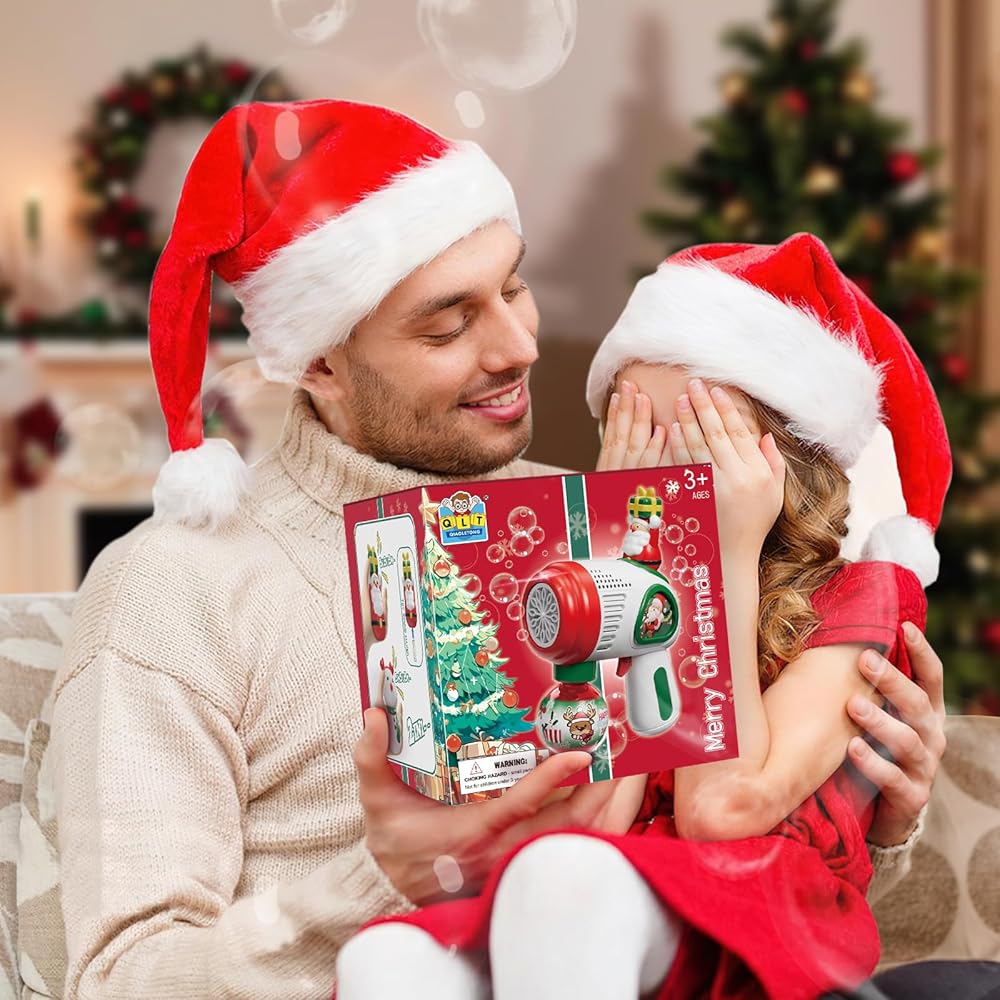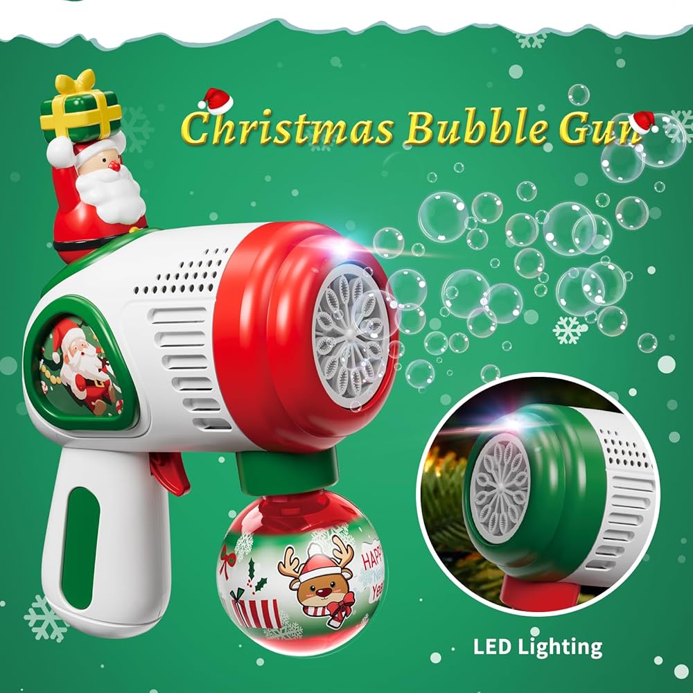 مسدس فقاعات QLT، مجموعة من قطعتين من مسدس فقاعات عيد الميلاد مع دمى سانتا كلوز ورجل الثلج، صانع فقاعات الإضاءة، للأطفال الصغار