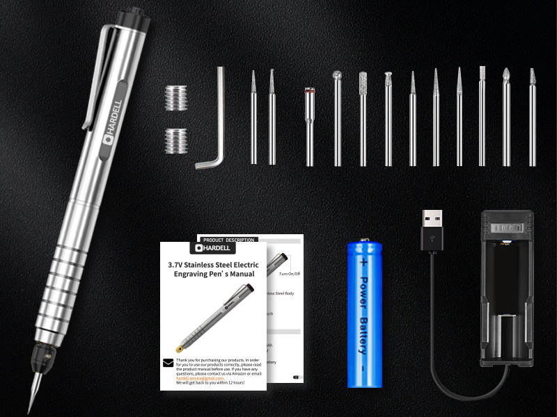 We have 1 1200mAh battery, 2 grinding heads, 10 rotating grinding heads, 1 Allen wrench, 2 screws and 1 USB charging cable. Helps you make key chains, DIY necklaces, or make other personalized gifts. If you have any questions during use, please feel free to contact us, we will solve any problems for you within 24 hours.