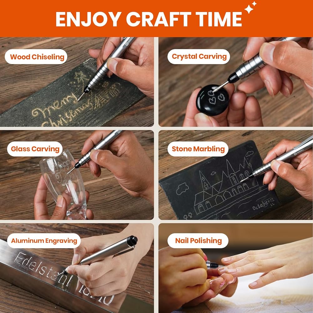 【Wide Application】This etcher engraving tool supports you to beautify and engrave on any material supplier, such as glass, wood, egg, plastic, jewelry, ceramic, leather, rings and more.