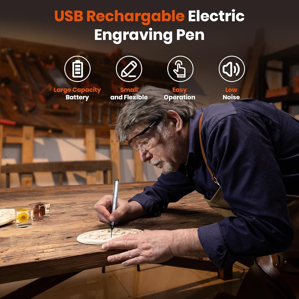 【Large Capacity Battery】1200mAh lithium battery can provide powerful power without wires, and the battery can be charged through the USB interface. Engraving Pen can generate strong and steady power to complete most DIY craft work.