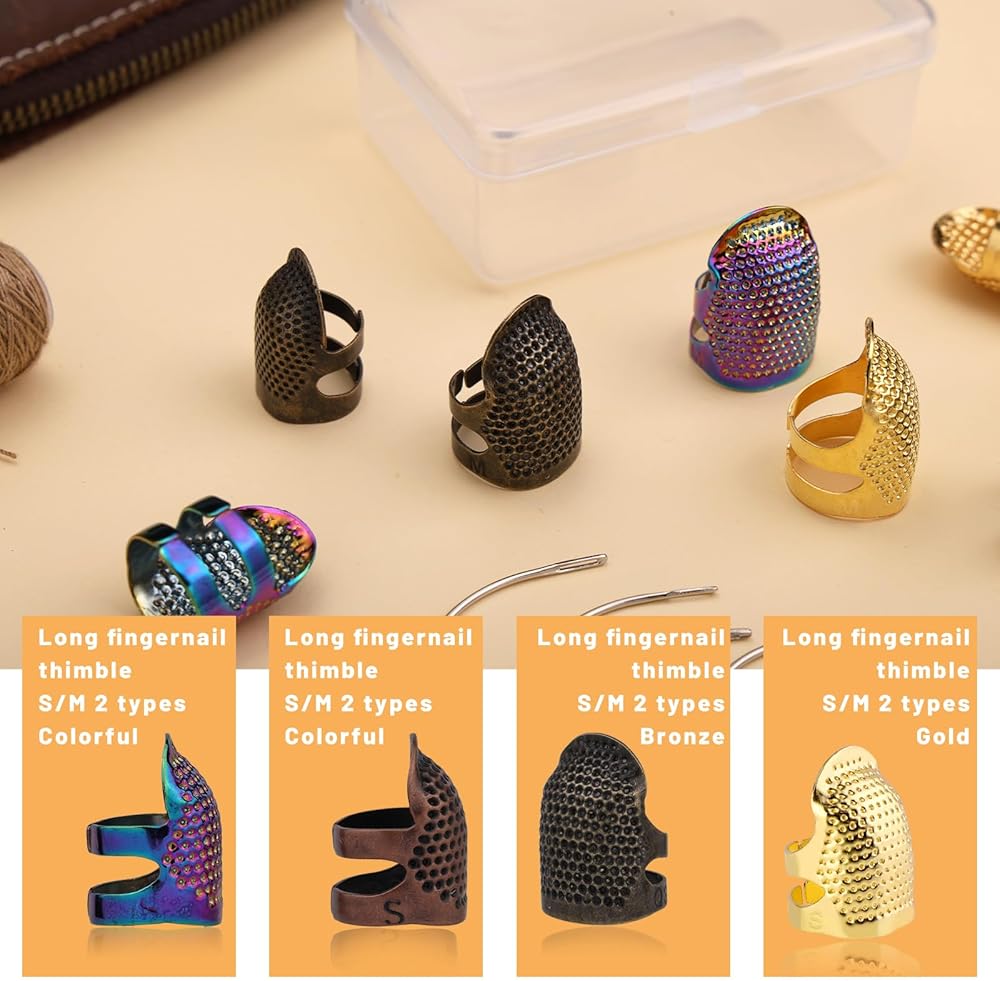 مادة متينة: واقي الأصابع من الكشتبان مصنوع من النحاس المتين والجلد الصناعي، والذي ليس من السهل تشويهه وليس من السهل أن يصدأ، مناسب للاستخدام طويل الأمد.