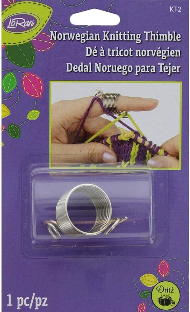 كشتبان الحياكة النرويجي من لوران هو كشتبان ملفوف سلكي مرن مع دليلين للغزل للتحكم في الغزل. رائعة لمشاريع الحياكة والكروشيه.