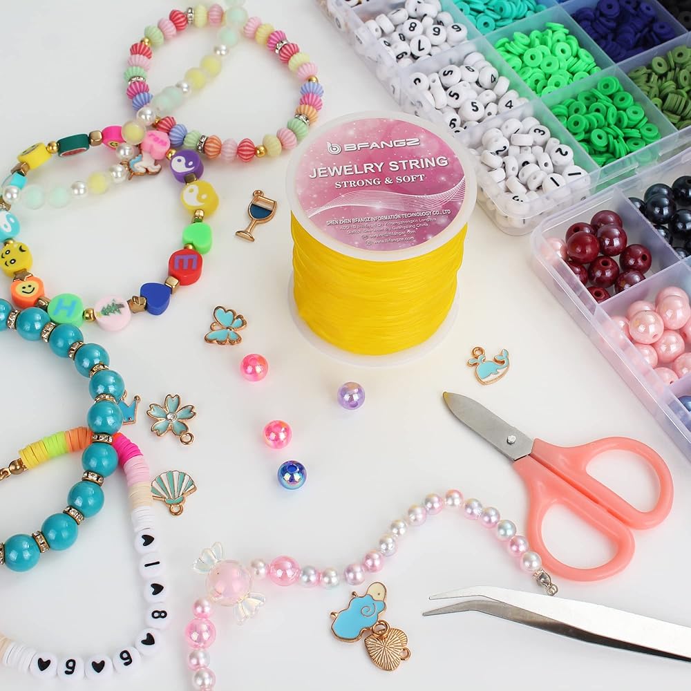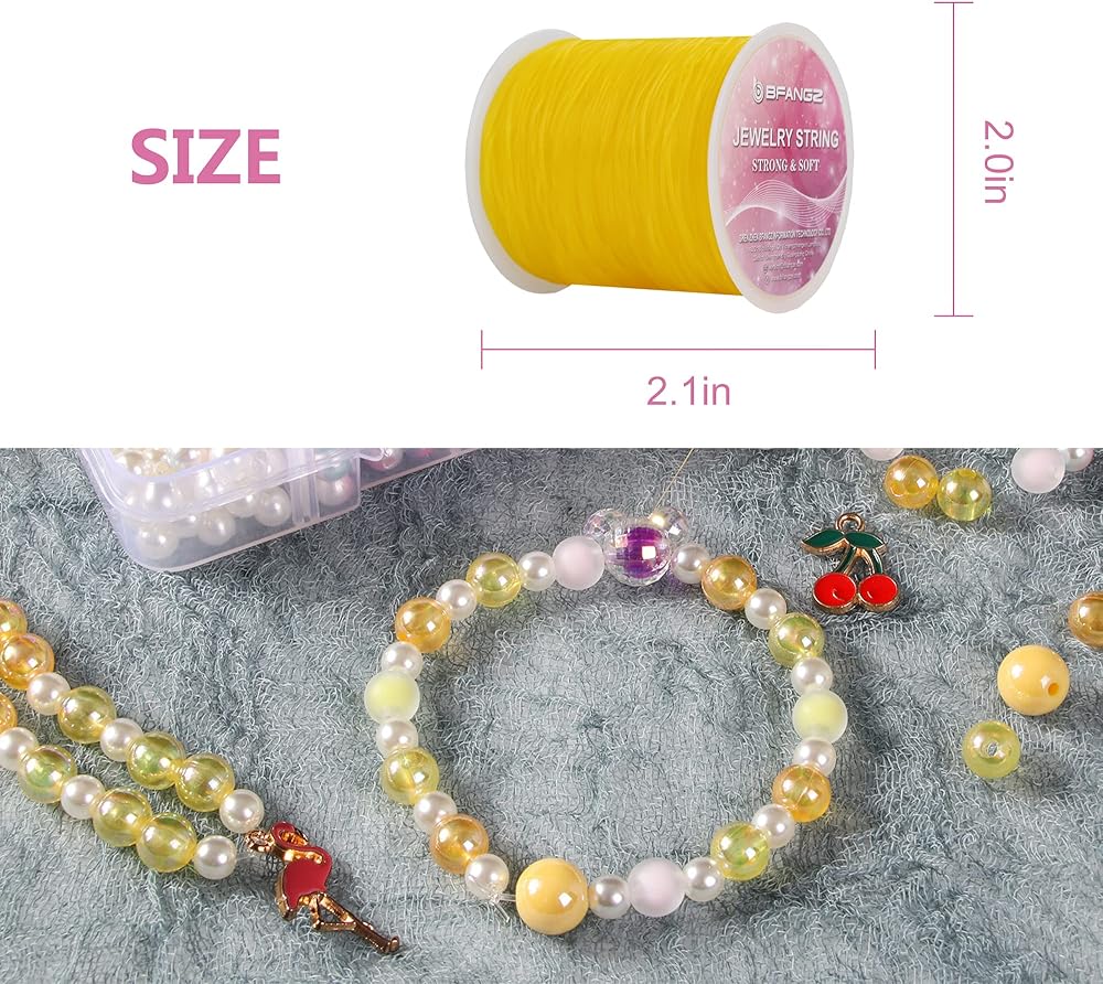 【مواصفات سلك الخرزة المطاطية لسلسلة السوار】: سلك مرن أبيض، سلك الخرزة المطاطية يأتي أكثر من 100 ياردة. قطر خيط السوار 0.8 مم.