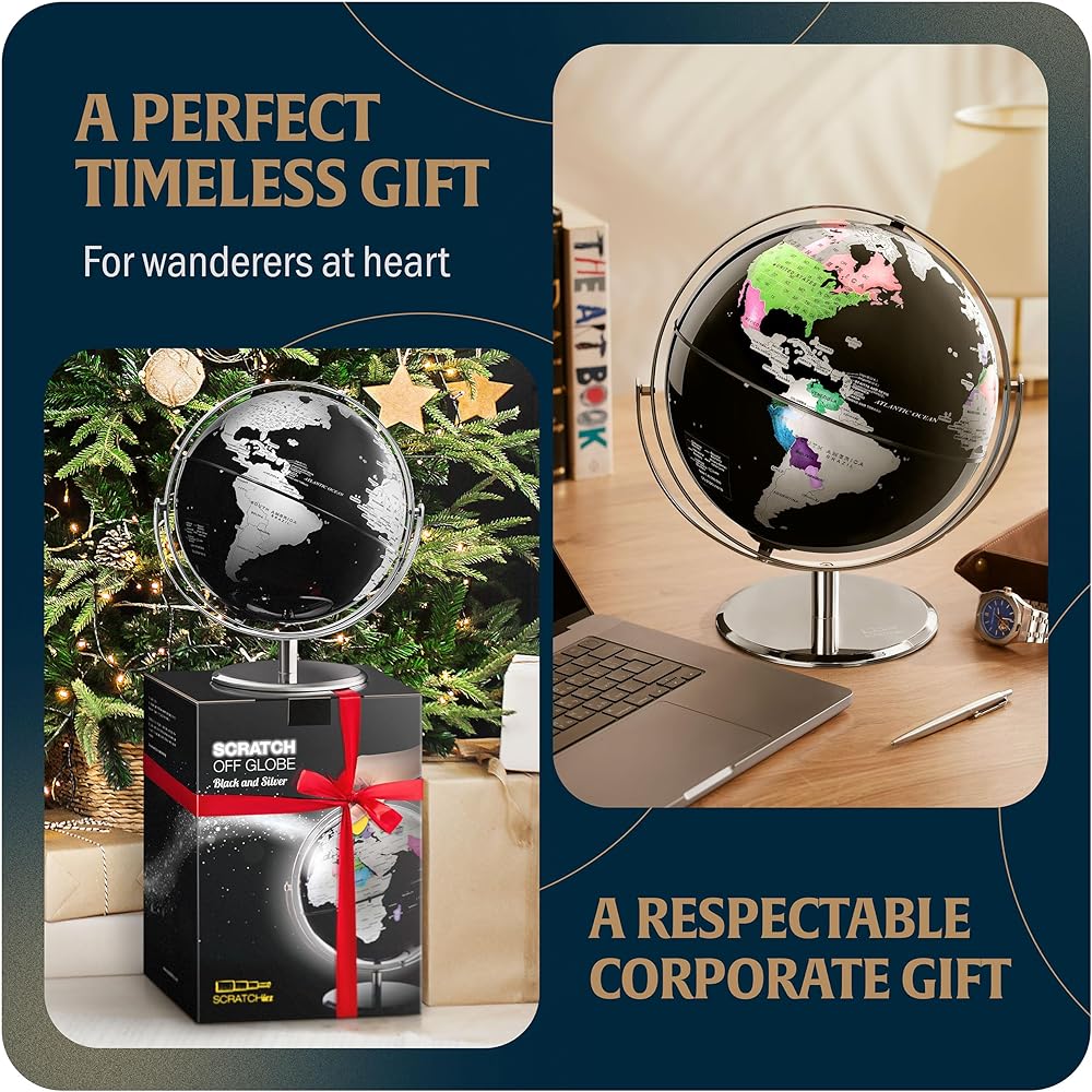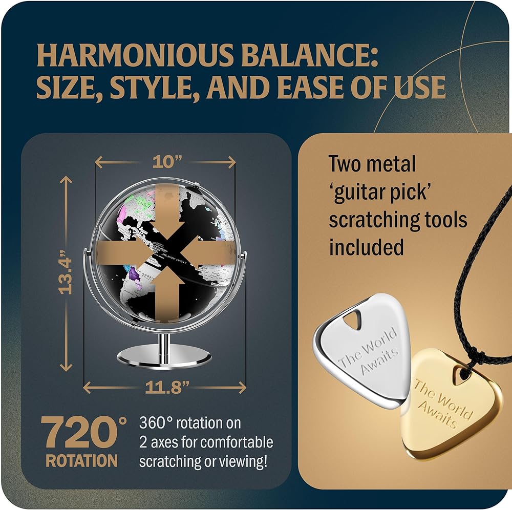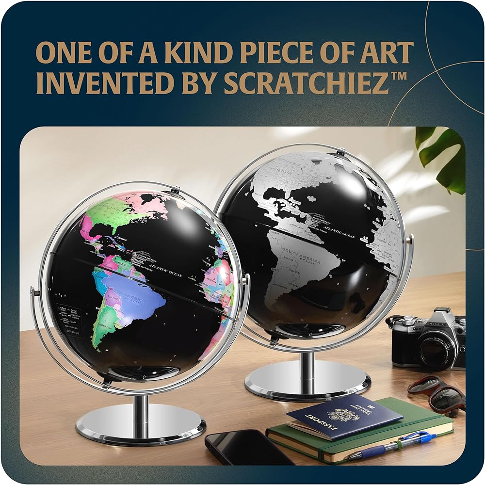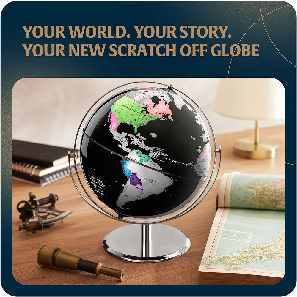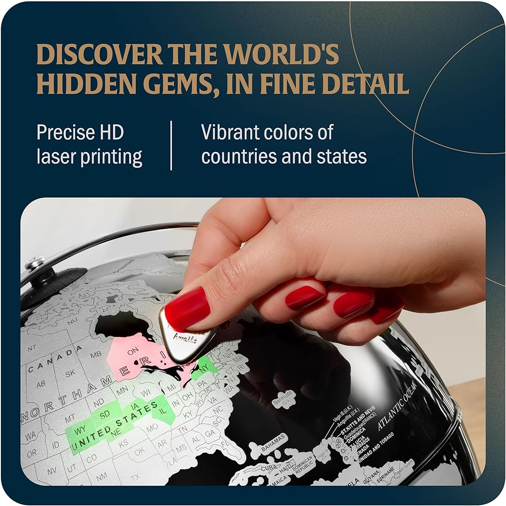 الكرة الأرضية الفريدة من نوعها للخدش: قم بخدش الأماكن التي زرتها واكشف عن مغامراتك المستقبلية في هذه الكرة الأرضية الفريدة من نوعها، والمصممة لمساعدتك على معرفة المكان الذي كنت فيه وأين لم تكن بعد.