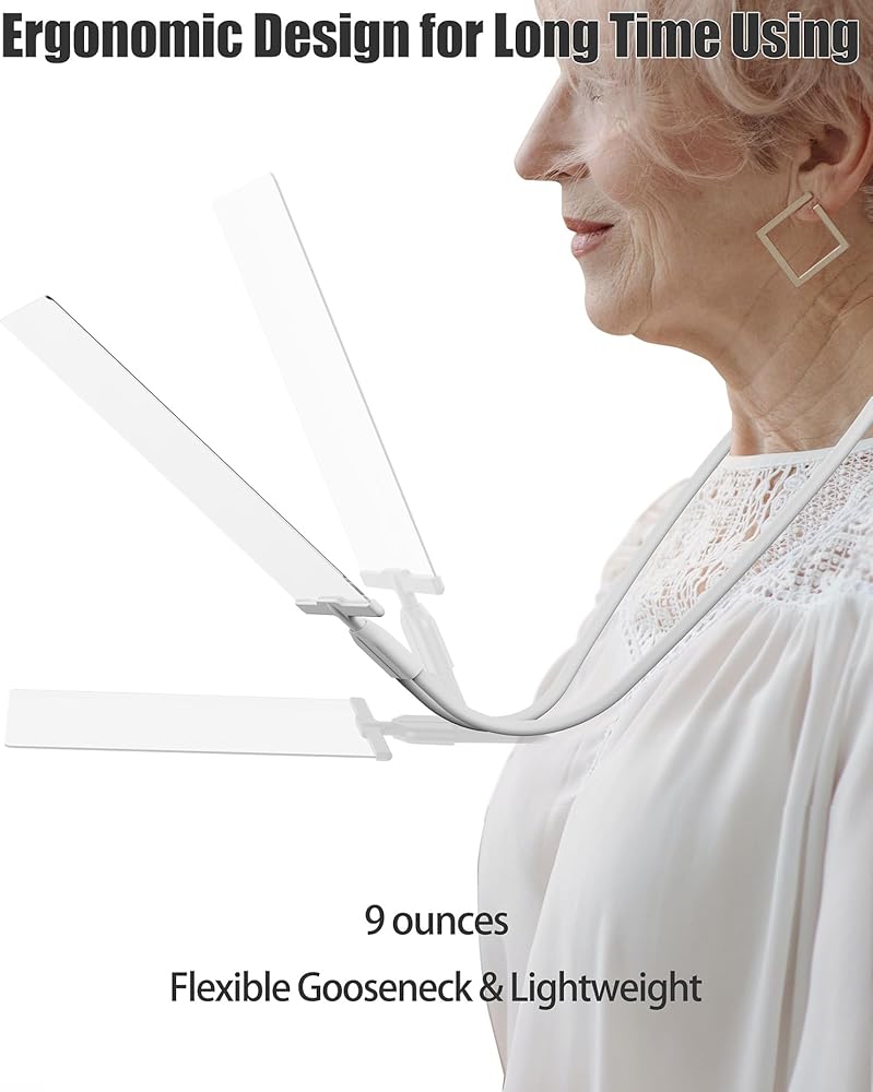 【تصميم مريح】: خفيف الوزن (حوالي 9 أونصة) ورقبة الإوز المطلية بالسيليكون ليس من السهل كسرها ومرنة للتعديل مع ثبات عالٍ. يمكنه الجلوس أو الوقوف أو حتى الاستلقاء على السرير عند ارتداء المكبر. يمكن توجيه جزء العدسة إما عموديًا أو أفقيًا.