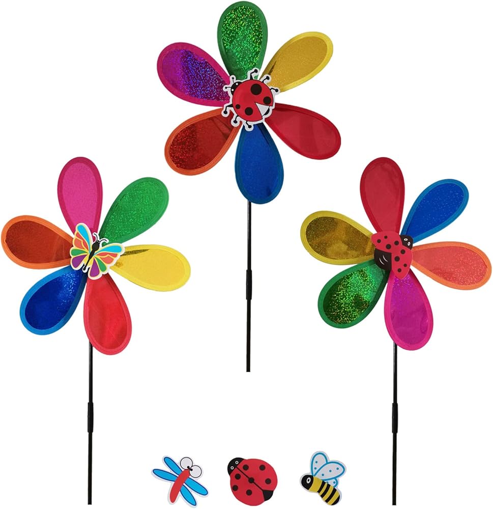 3 عبوات من الحشرات الجميلة الملونة دوامة الرياح الدوارة هدايا الحفلات حديقة ساحة الحديقة ألعاب تزيين الحديقة للأطفال الرضع (3 الوان عشوائية)