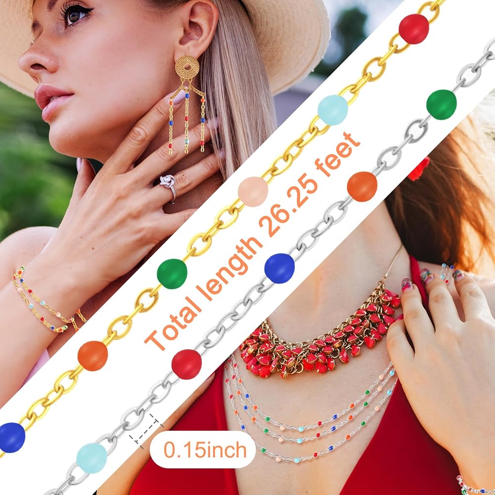 متعددة الأغراض: يتم لف هذه القلادة بكميات كبيرة لاستخدامات مختلفة، يمكنك استخدام كماشة لقص طول السلسلة المفضلة لديك، يمكنك صنعها بنفسك في أي نمط من القلادة، والسوار، وسلسلة القدم، وسلسلة الخصر، والسلاسل الهرمية، ومجوهرات الجسم، يمكنك إضافتها أي قلادة، اصنع سلسلتك الشخصية أو أي فنون وحرف يدوية أخرى، للاستخدام الخاص أو لعائلتنا وأصدقائنا مناسب جدًا
