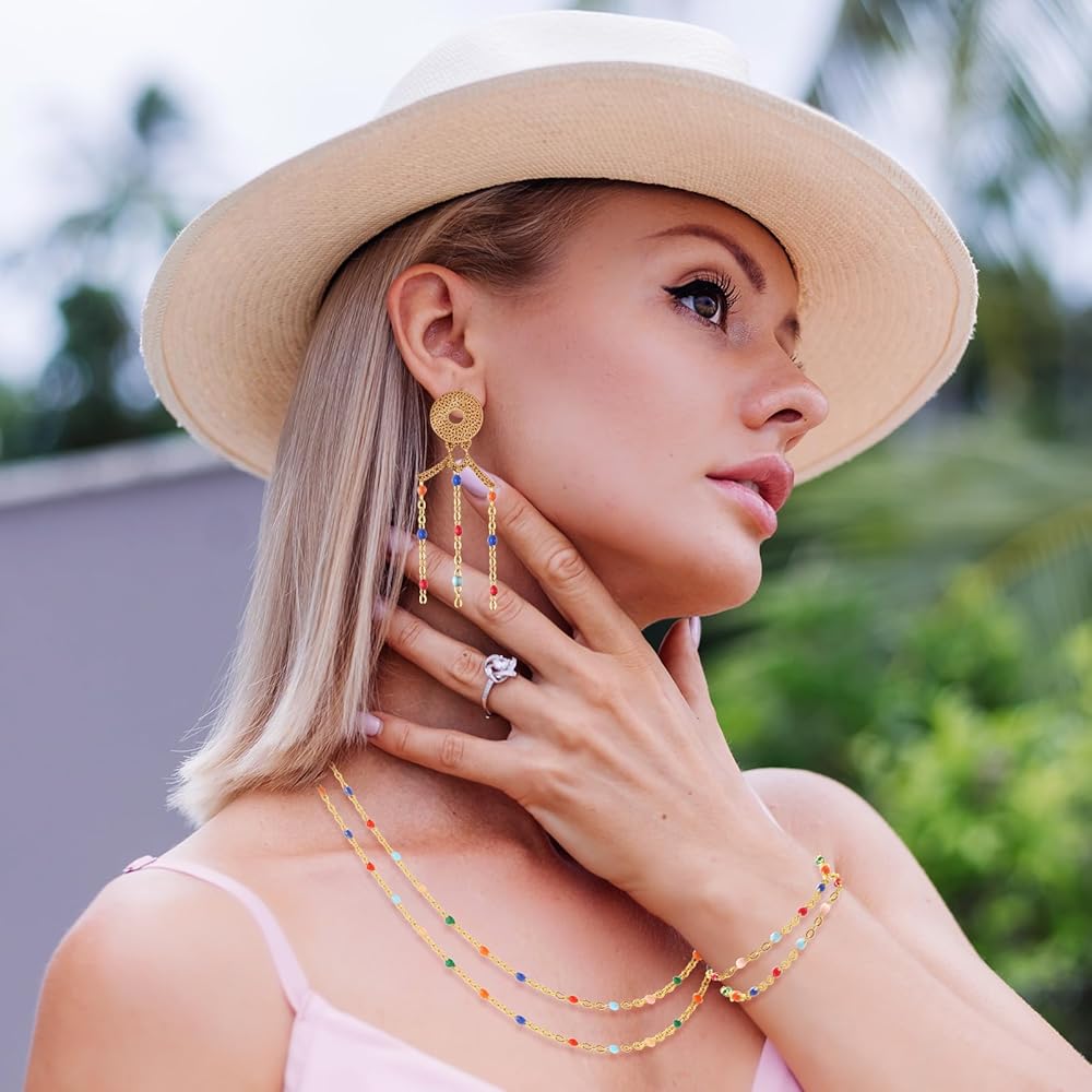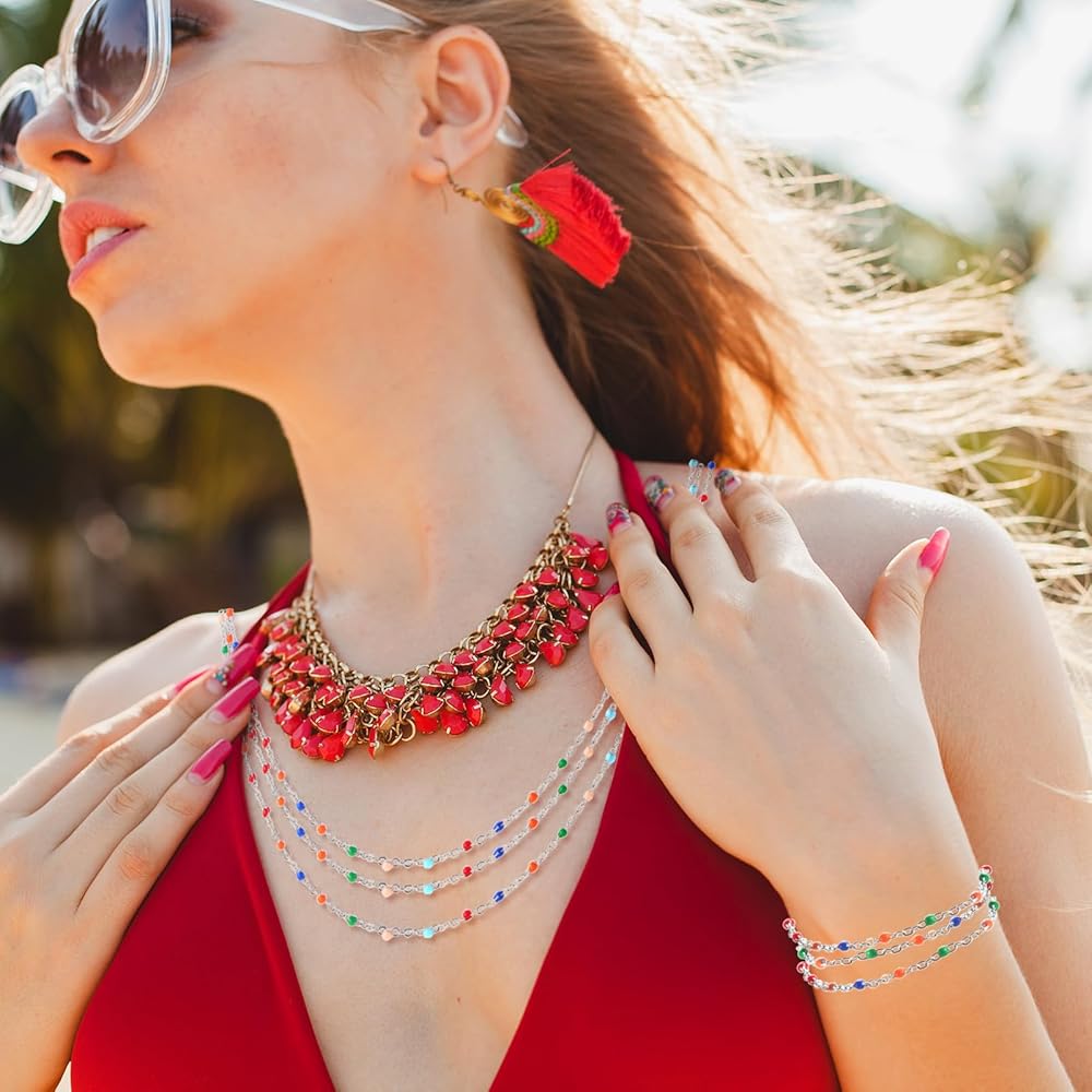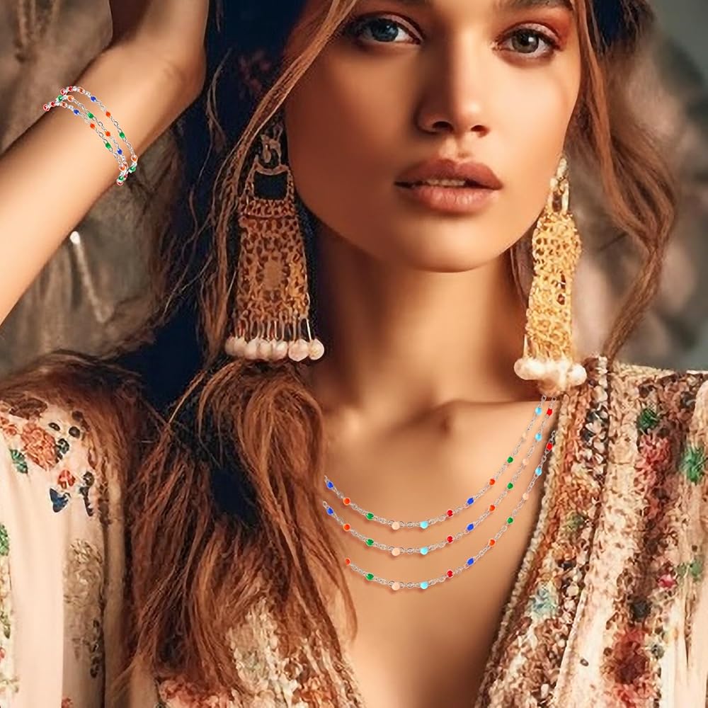 اللون: تحتوي هذه العبوة على لفتين من سلاسل الخرز المطلية بالذهب عيار 18 قيراط والمطلية بالفضة، والتي تبدو مشرقة ولامعة ولائقة في الحياة الحقيقية ولا تبهت