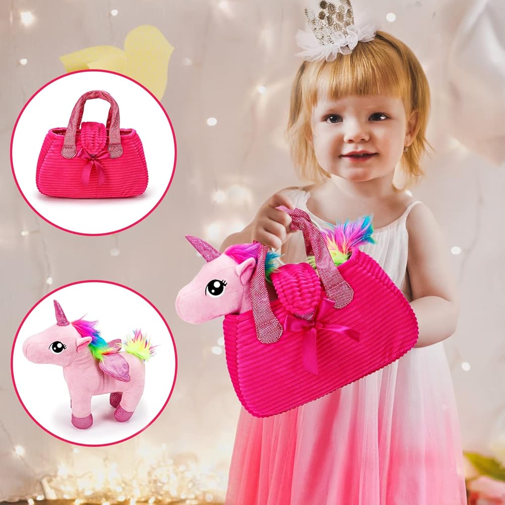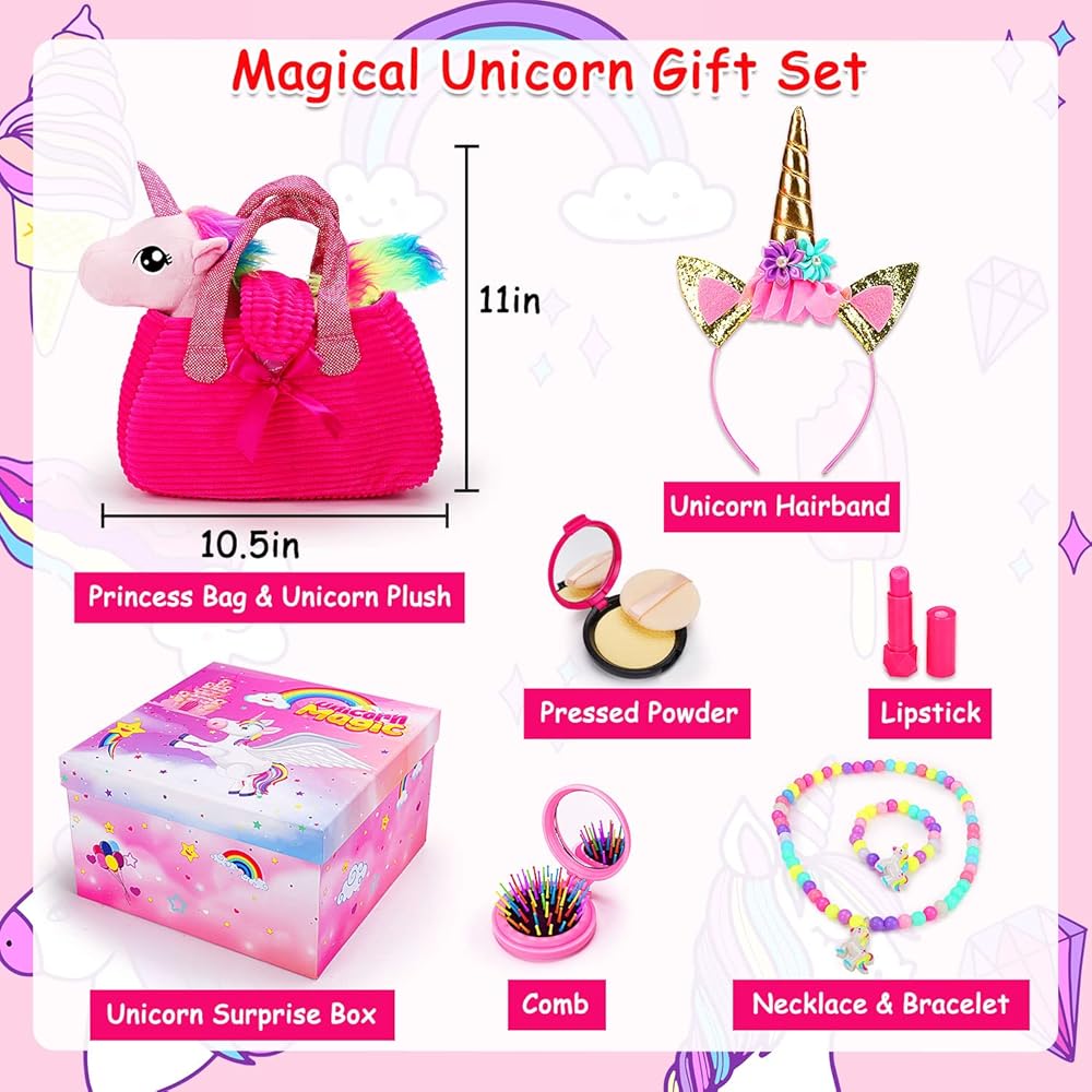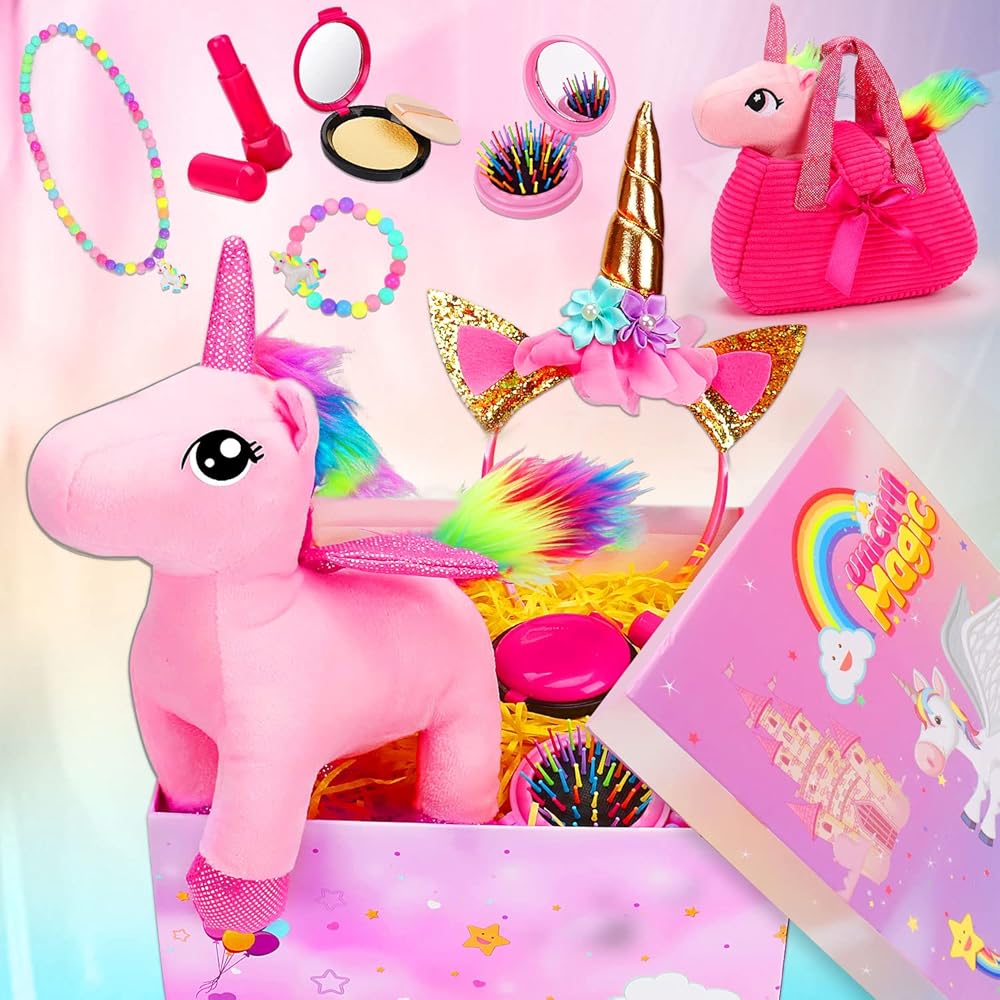 يونيكورن هدية مربع للفتيات يونيكورن أفخم لعبة الحيوانات الأليفة لعب المحفظة لمدة 3 4 5 6 سنوات من العمر الفتيات هدايا عيد ميلاد التظاهر اللعب ماكياج يونيكورن الحيوانات المحشوة للأطفال فتاة سن 2-4 5-6 6-8 عيد الفصح سلة الحشو