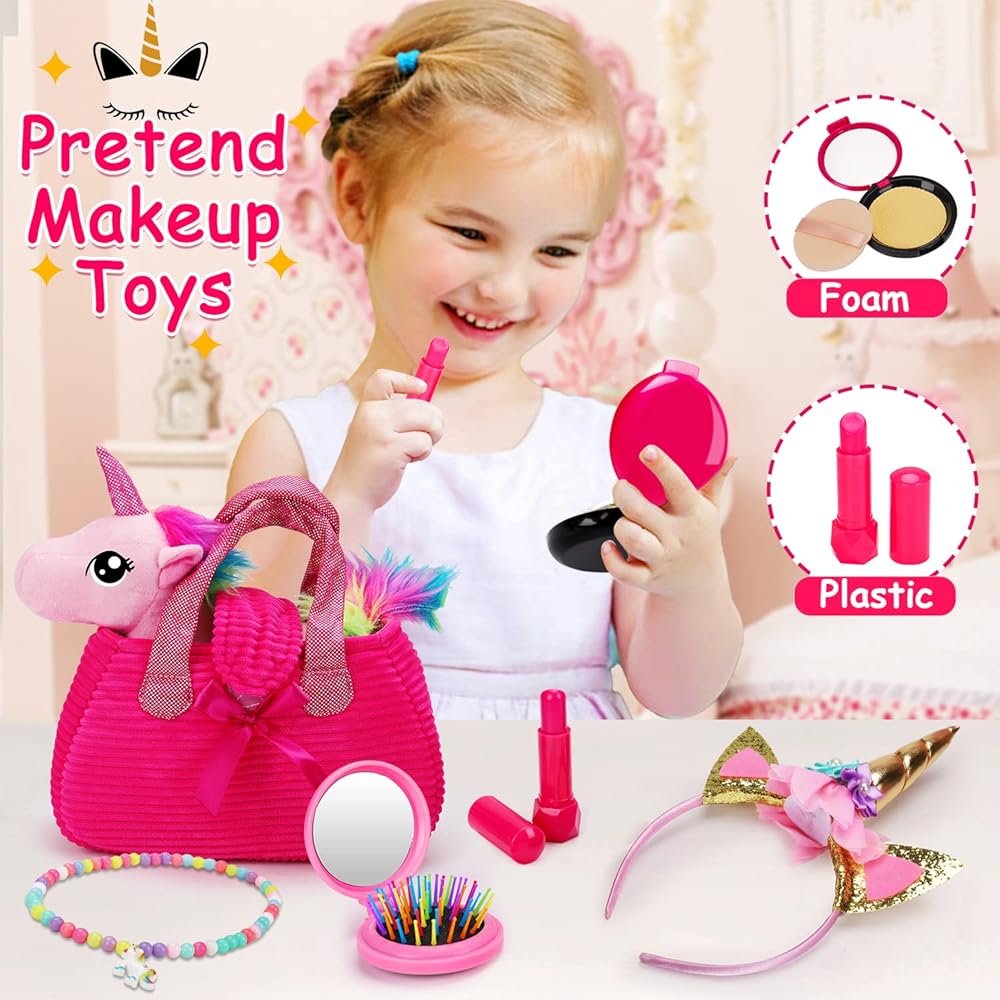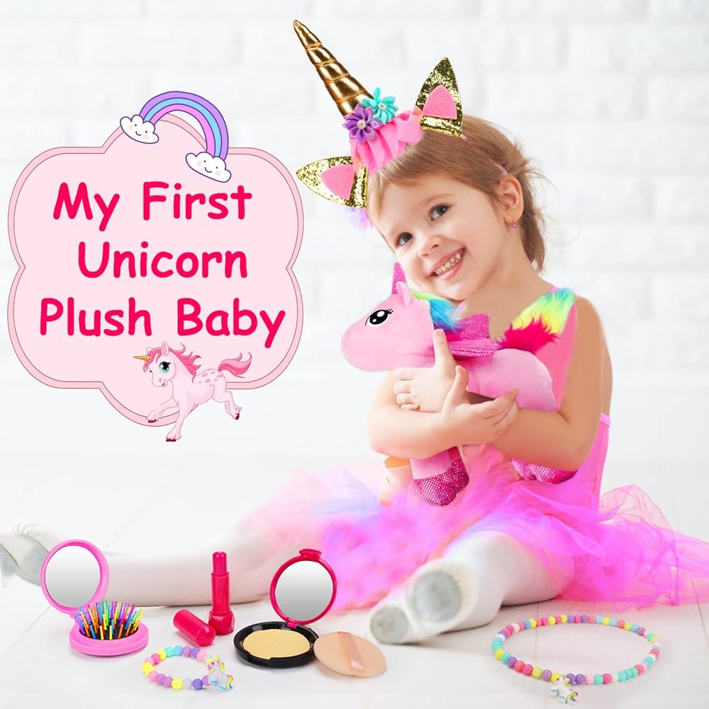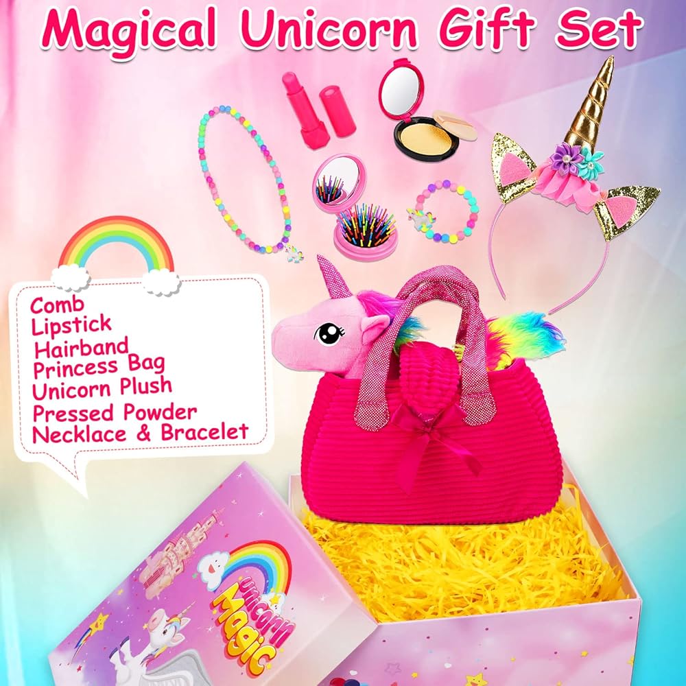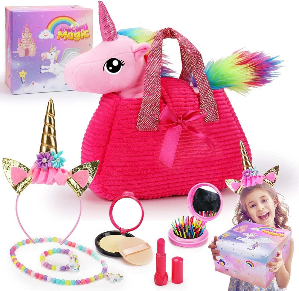 يونيكورن هدية مربع للفتيات يونيكورن أفخم لعبة الحيوانات الأليفة لعب المحفظة لمدة 3 4 5 6 سنوات من العمر الفتيات هدايا عيد ميلاد التظاهر اللعب ماكياج يونيكورن الحيوانات المحشوة للأطفال فتاة سن 2-4 5-6 6-8 عيد الفصح سلة الحشو