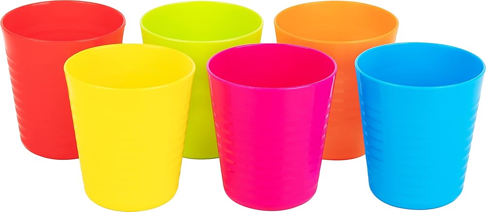 عبوة قيمة، مقاس مثالي: تتضمن مجموعة الأكواب البلاستيكية للأطفال، 6 أكواب بلاستيكية قابلة لإعادة الاستخدام في 6 ألوان زاهية متنوعة - سعة 236 مل، - الارتفاع - 7.62 سم، القطر الموجود أعلى أكواب الشرب للأطفال 7.62 سم، القطر الموجود في الجزء السفلي 5.08 سم، أكواب بلاستيكية صغيرة مثالية للأطفال