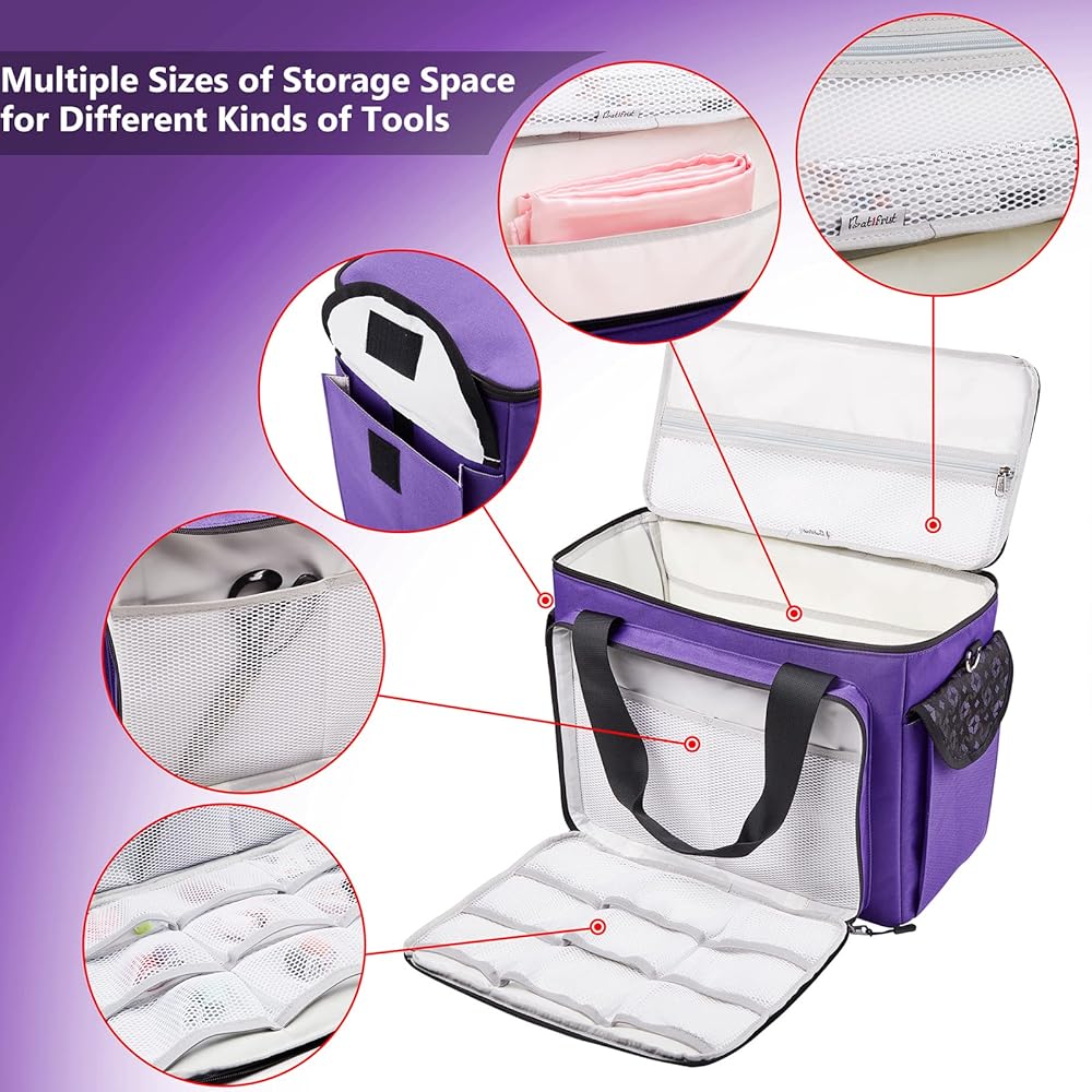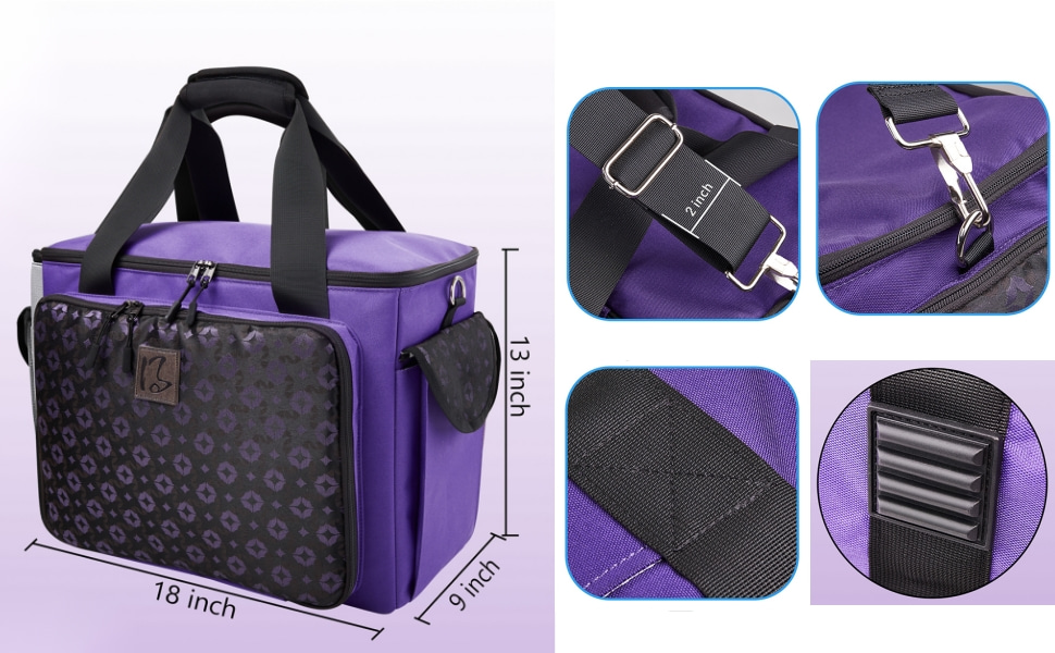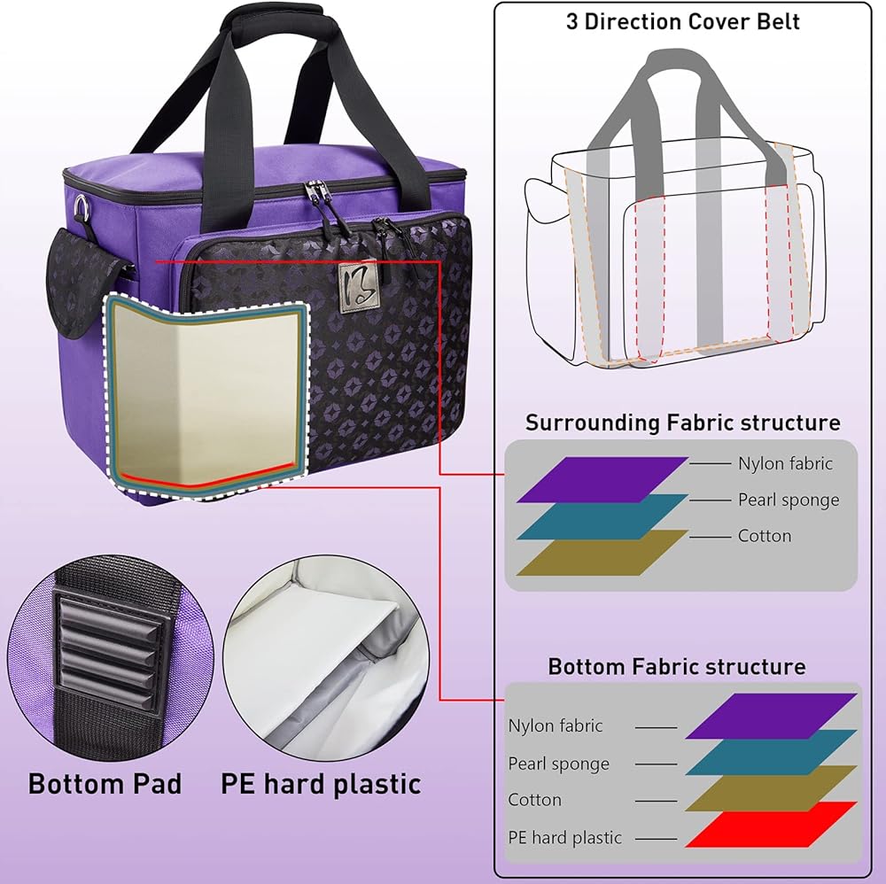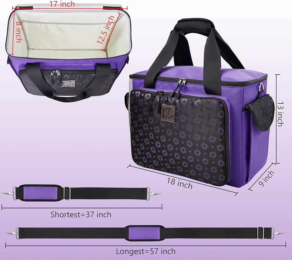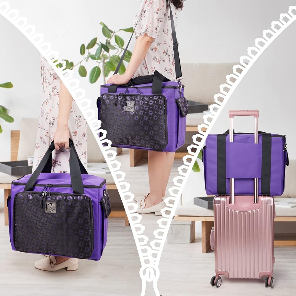 حقيبة ماكينة الخياطة مع سحابات واي كيه كيه، حقيبة حمل ماكينة الخياطة مع 16 قطعة من الحقائب العملية، متوافقة مع معظم ماكينات الخياطة القياسية., بنفسجي, نوبل