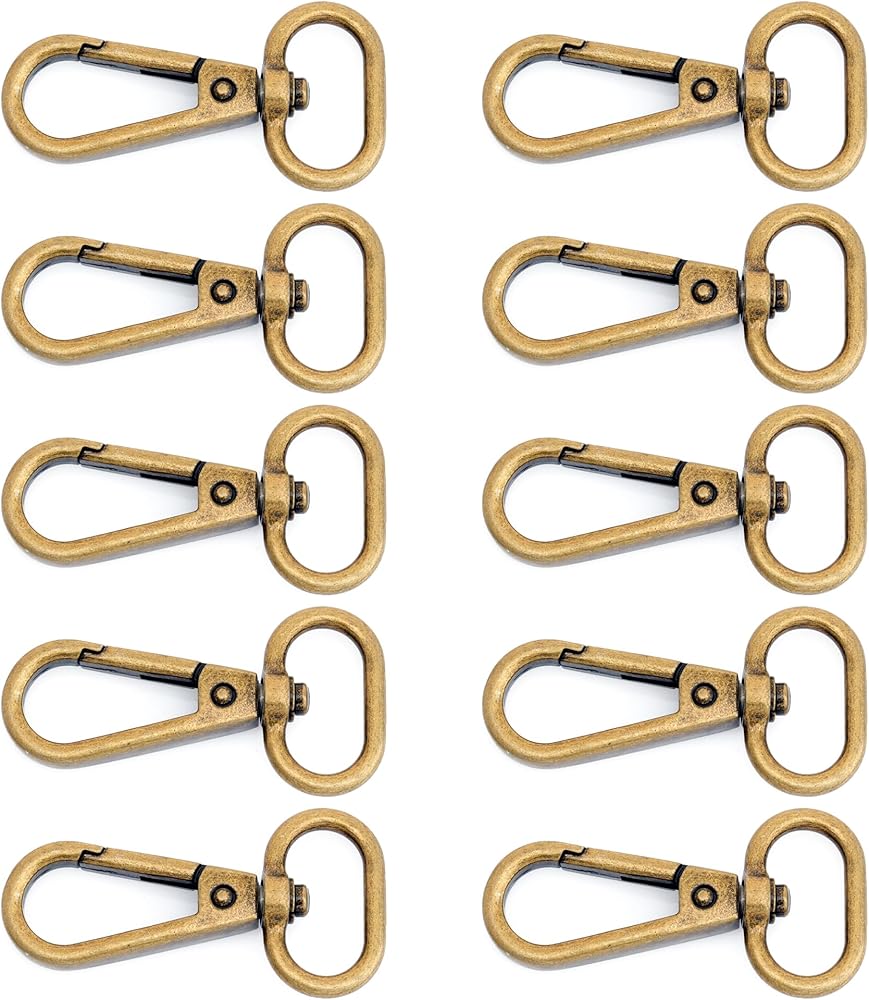 10 مجموعات من 10 مجموعات من خطافات المفاجئة النحاسية العتيقة من كرافتميمور، مشبك جراد البحر، بوابة دفع دوارة، مشابك عصرية مع حلقة على شكل حرف D FSD1 (1 بوصة)